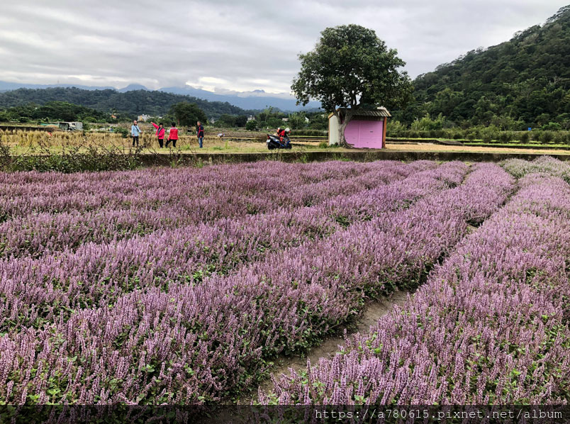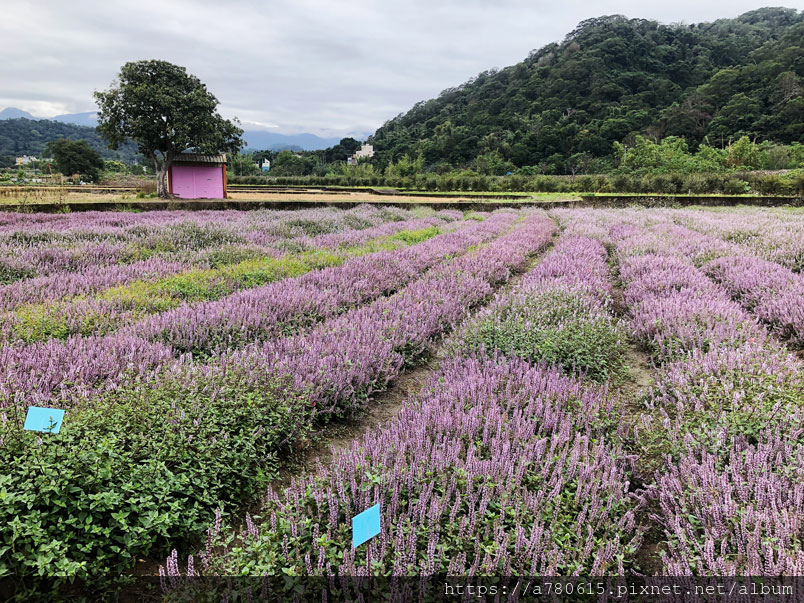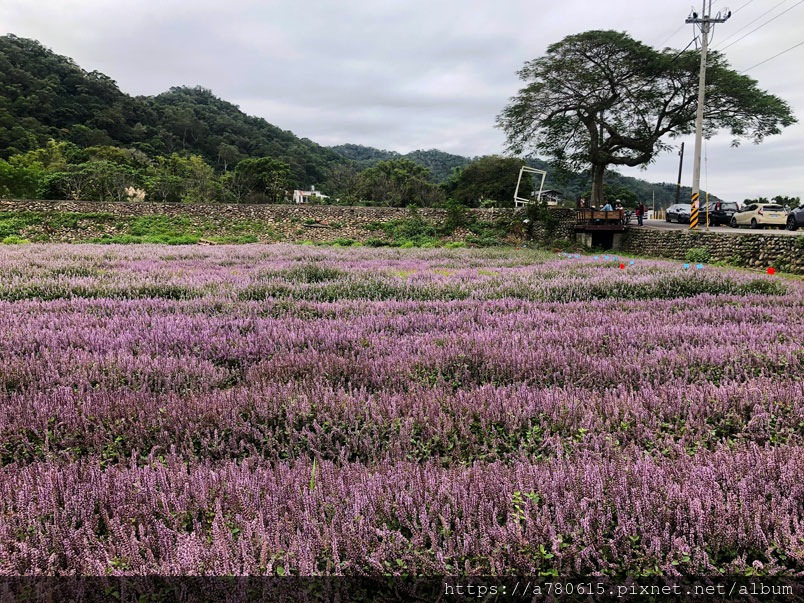 紫色花海搭配一旁南山金城武樹,共構出一幅宛如油畫般的歐風美