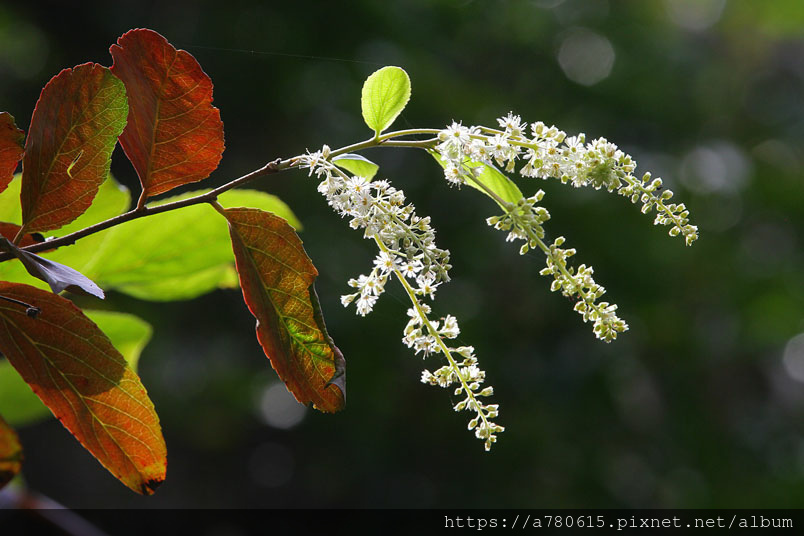 穗狀花序多生於枝條末端,下垂型,花淡白,隨枝條在風中搖