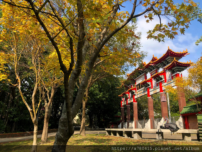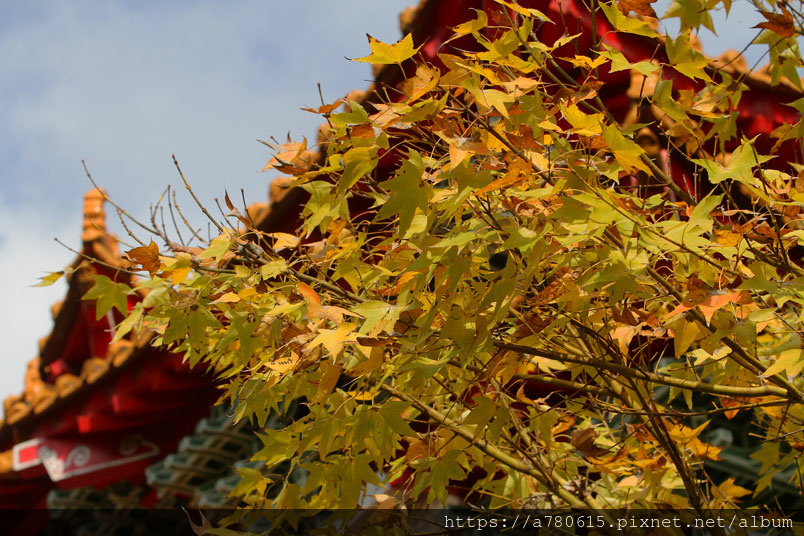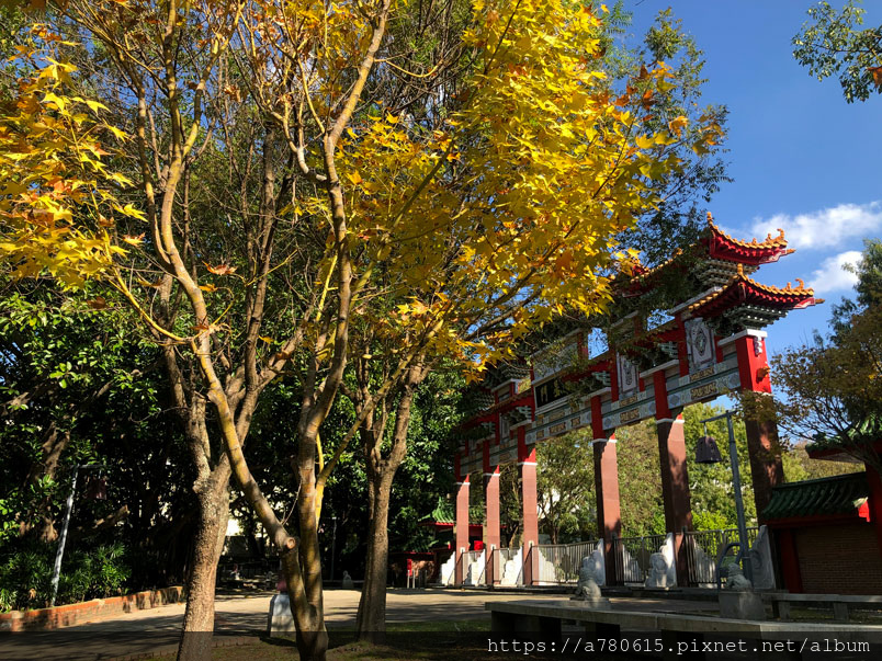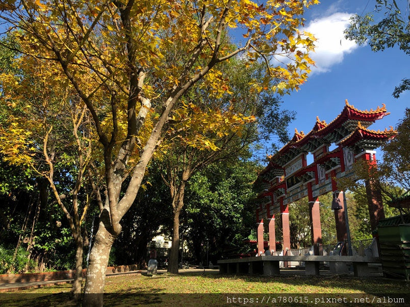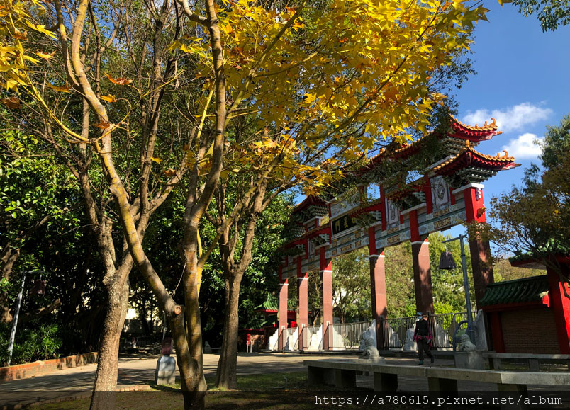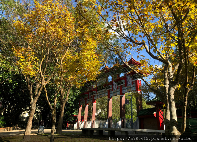 桃園孔廟櫺星門前種了幾棵黃金楓,目前正是賞黃葉的好時節,