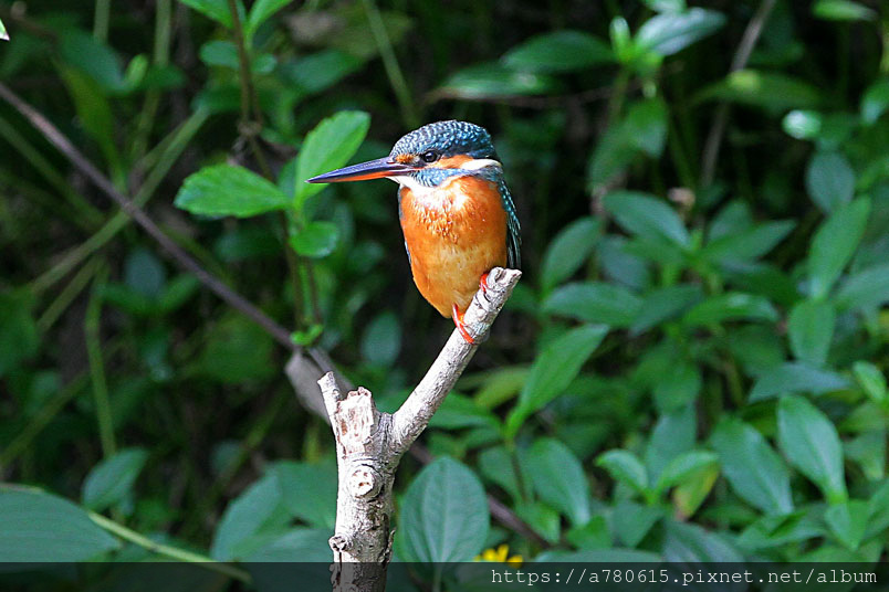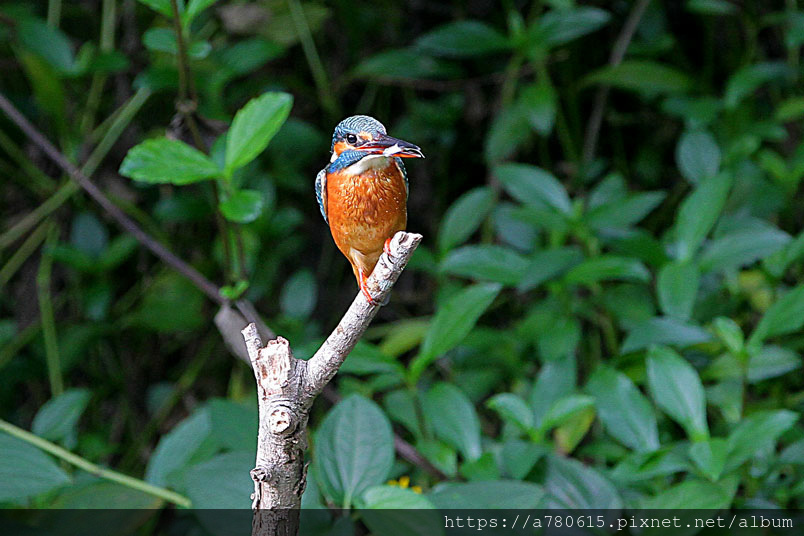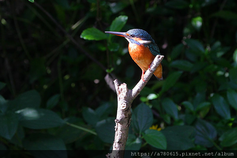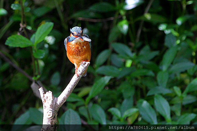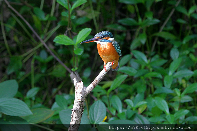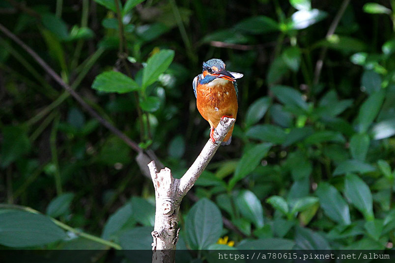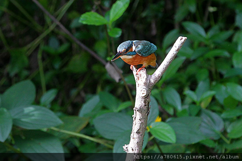 翠鳥喜歡停在水面突出的樹枝上,一站就可以是好幾分鐘,眼觀四