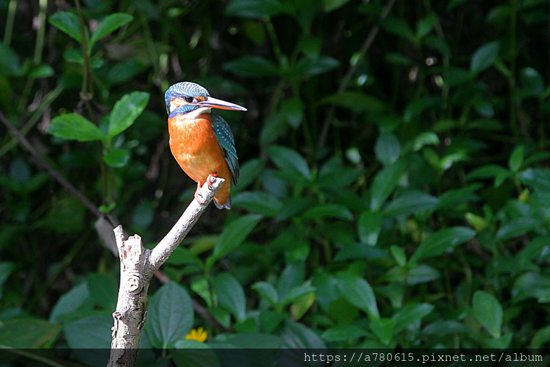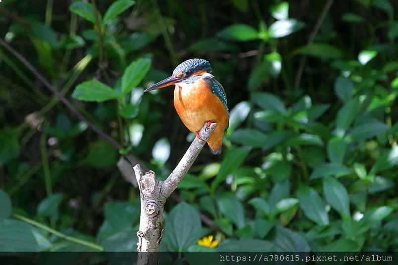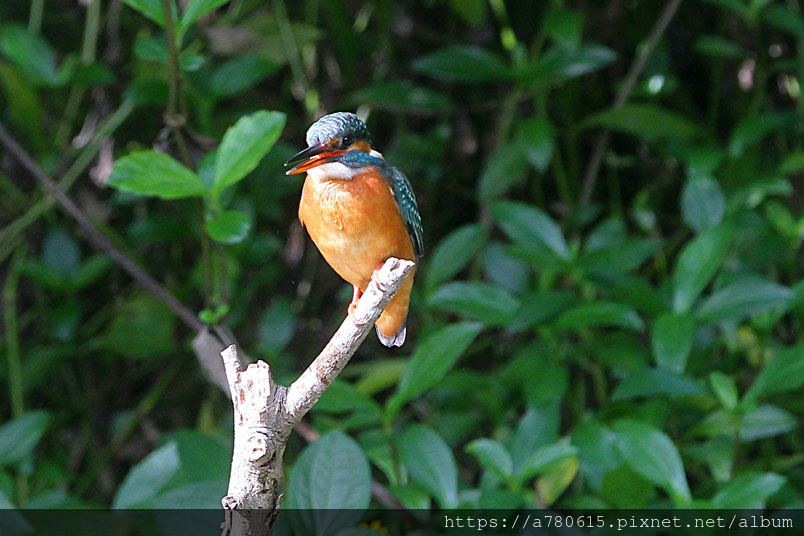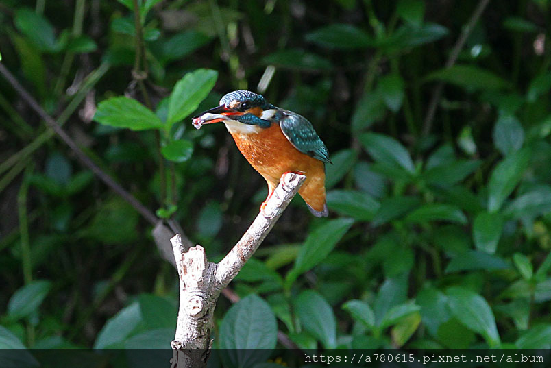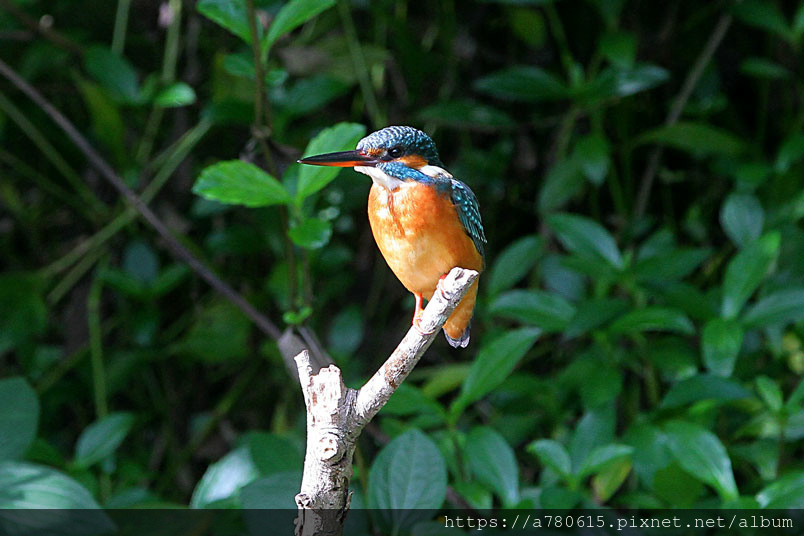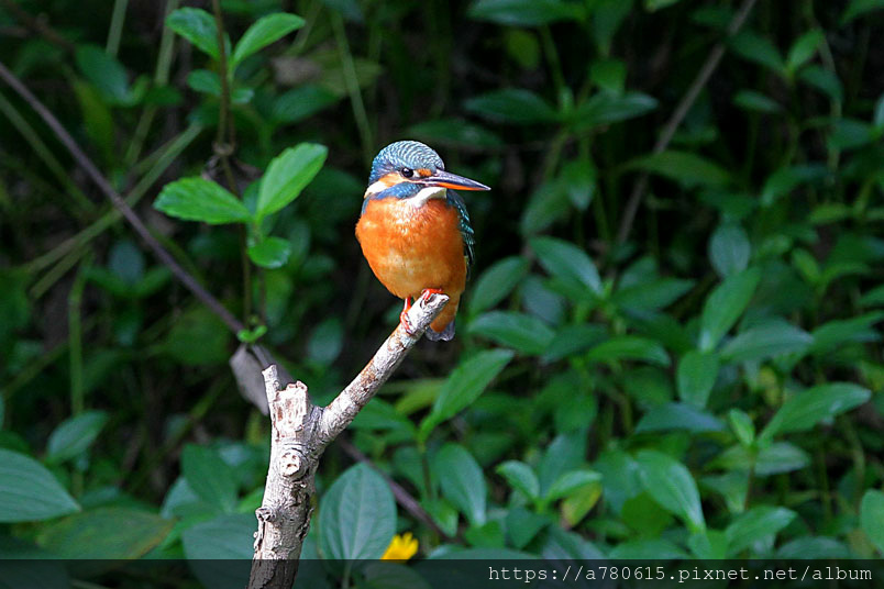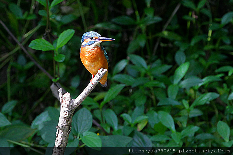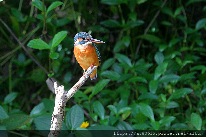翠鳥喜歡停在水面突出的樹枝上,一站就可以是好幾分鐘,眼觀四