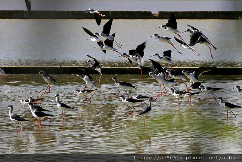 高蹺鴴,常結群活動,喜沿海淺水及淡水沼澤地。可見於湖泊、沼