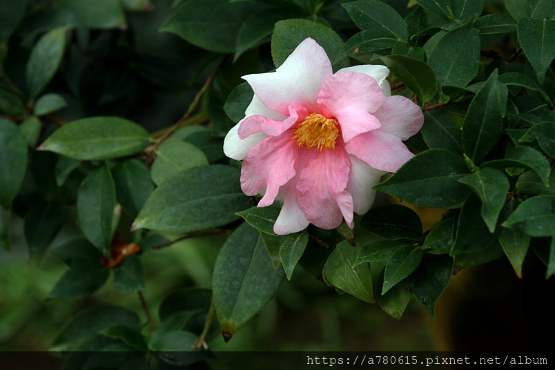 欣賞茶花的重點除了色澤,還有形狀,像是玫瑰形或是單瓣、