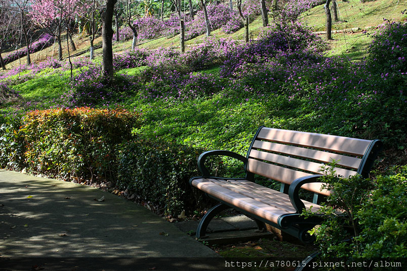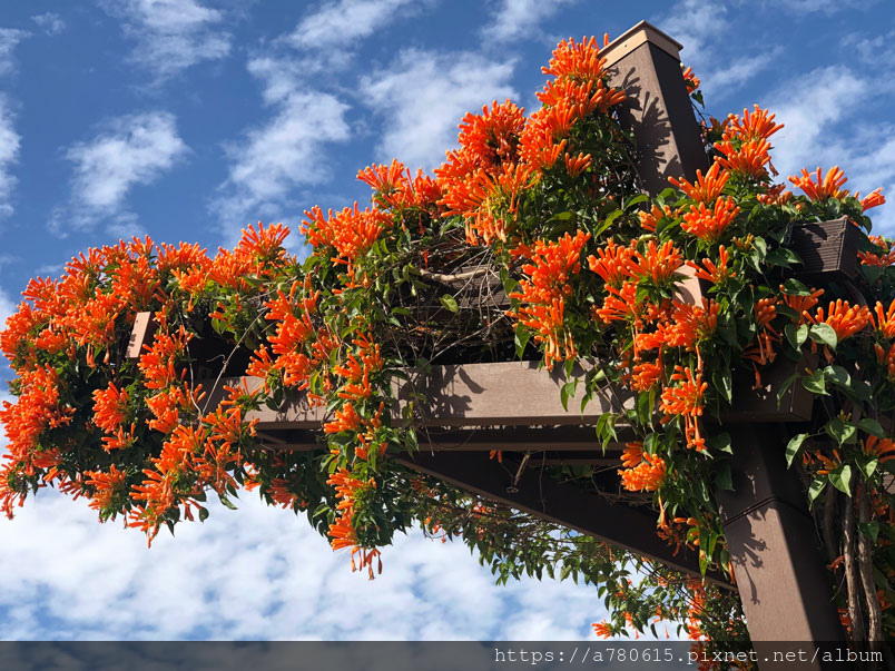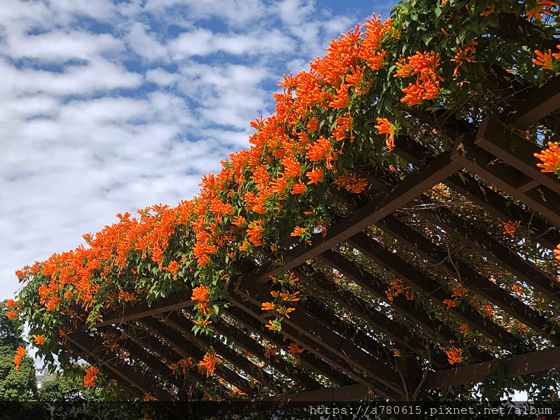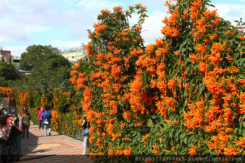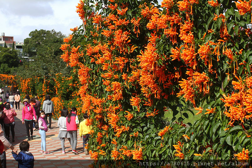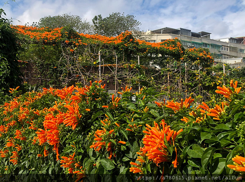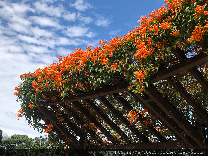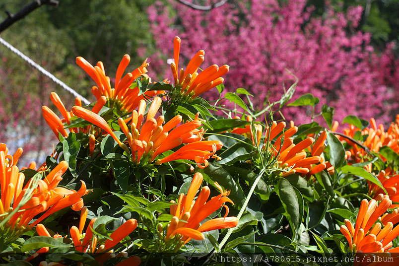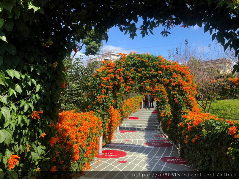永吉公園除了炮仗花,還種了不少櫻花、蔓性馬櫻丹、蒜香藤等