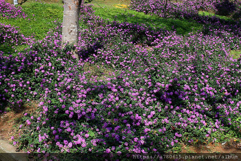 蔓性馬櫻丹,匍匐性佳生長迅速,是道路邊坡、駁坎及公園等場