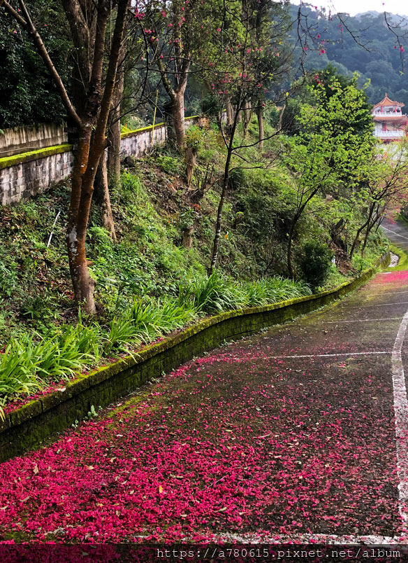 元德寶宮,看紅豔浸染了翠綠山林,斑斕璀璨春意盎然。