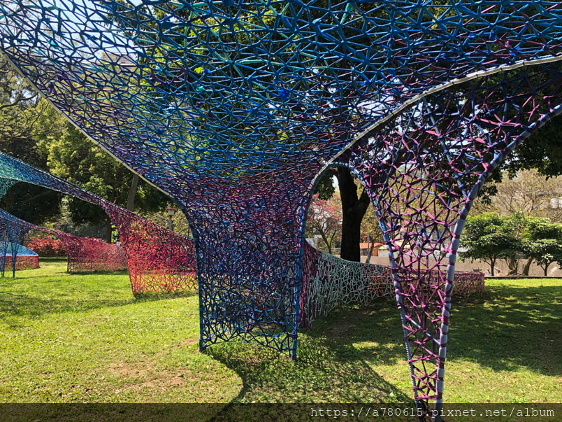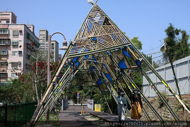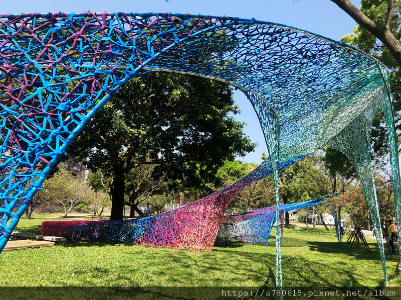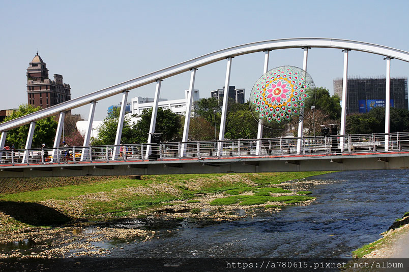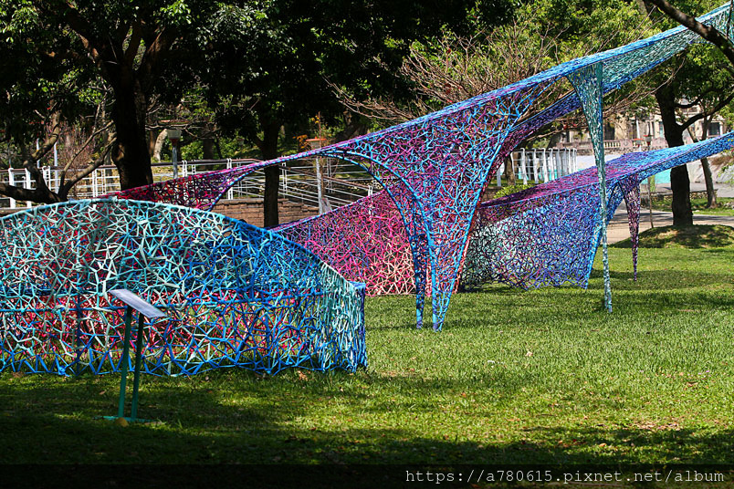 作品運用青溪橋體本身,猶如一隻溫婉狹長的眼睛,透過編織的色