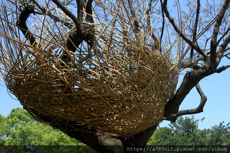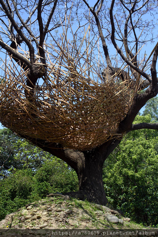材編織,結合樹形巨大優美的苦楝樹,編織一個巨型的巢,來表現