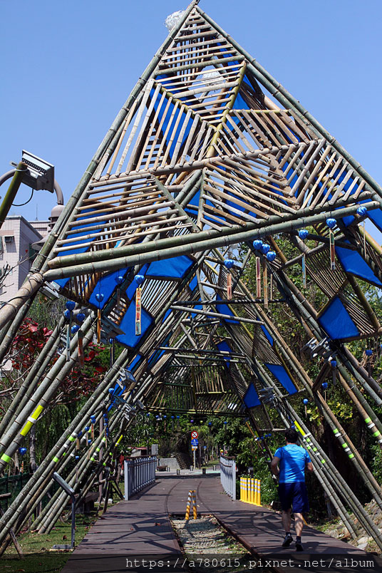 善用桃林鐵路空間,以簍空的竹連結起隧道的氛圍,帶領親子在裡面