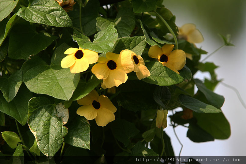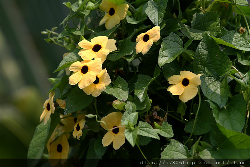 黑眼花,別名:翼葉山牽牛、翼葉老鴉嘴、黑眼蘇珊。原產