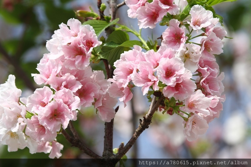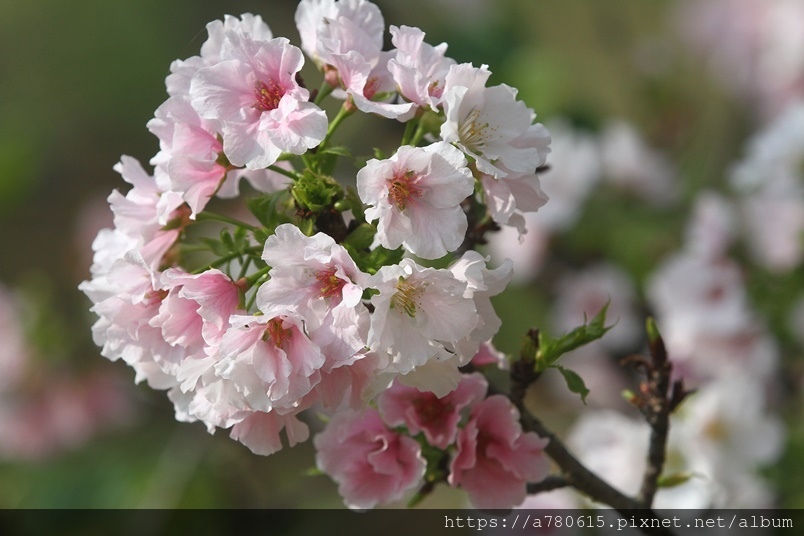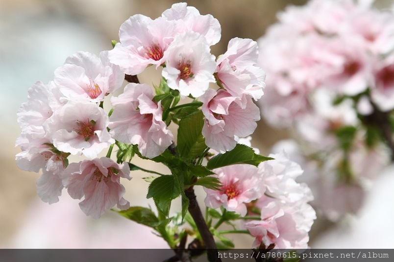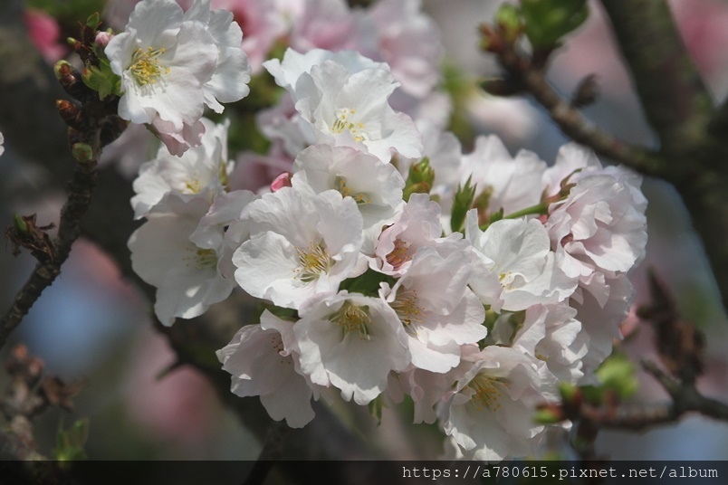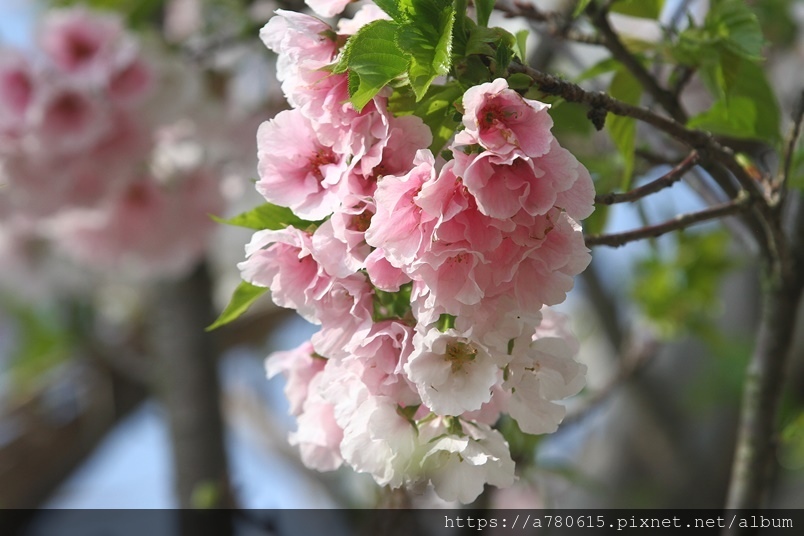 花怒放,富士櫻、墨染櫻爭相競豔,把一條小小巷弄妝點