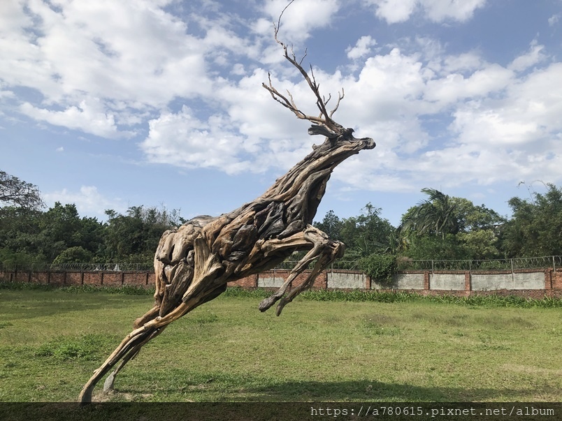 由漂流木創作藝術家王偉權創作的「鹿與鹿的對話」,跳躍