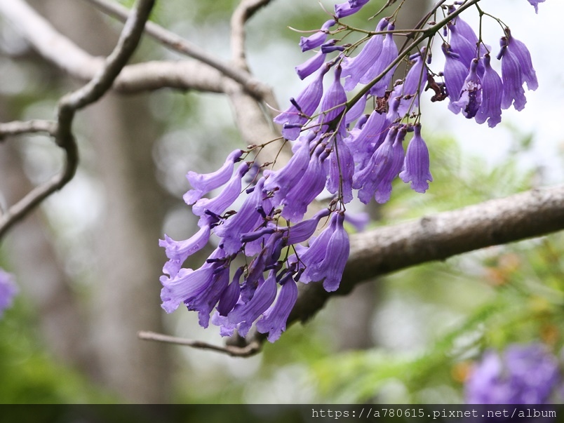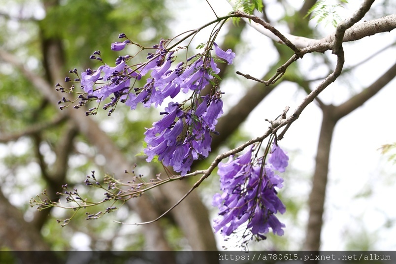 藍花楹,紫葳科藍花楹屬落葉喬木,原產地在巴西、西印度群島、秘魯及坡利維亞等地,別名為巴西紫葳、非洲紫葳。