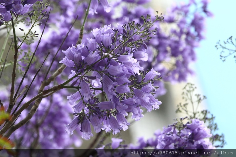 藍花楹的花語是寧靜、深遠、憂鬱、靜謐。