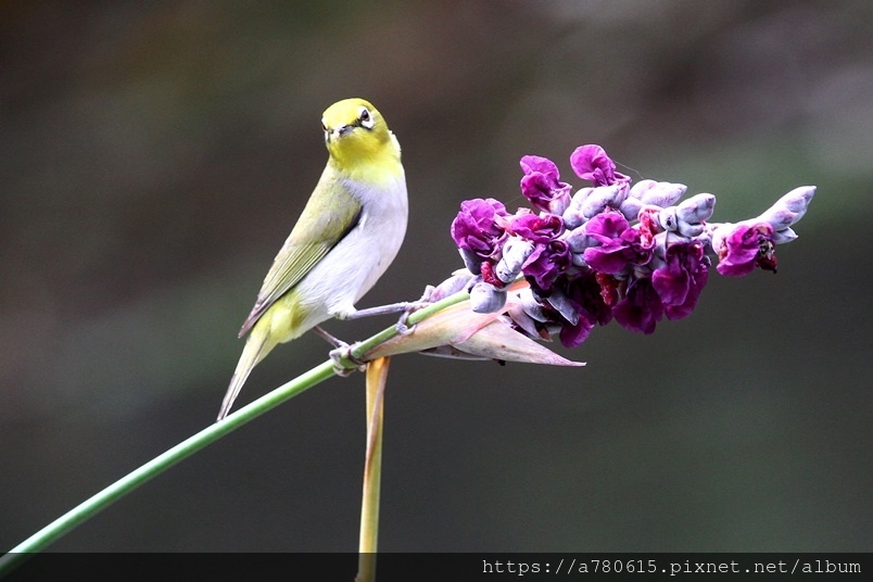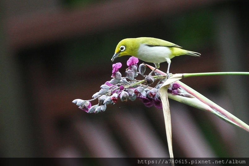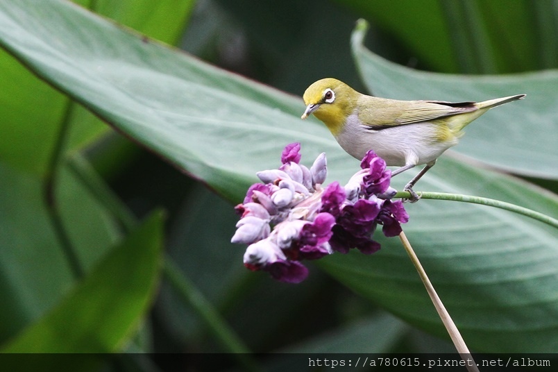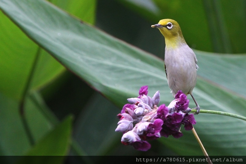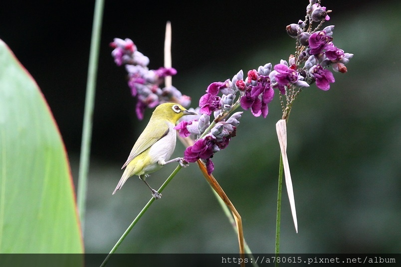 公園種了不少水竹芋,也引來許多綠繡眼來吸花蜜,喜