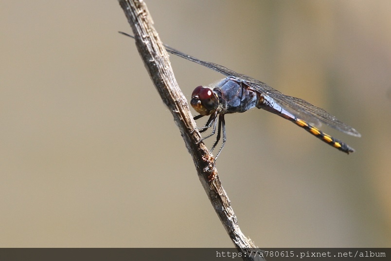 ,腹部1-3節藍灰色,5-7節各節腹背面及側視具黃色