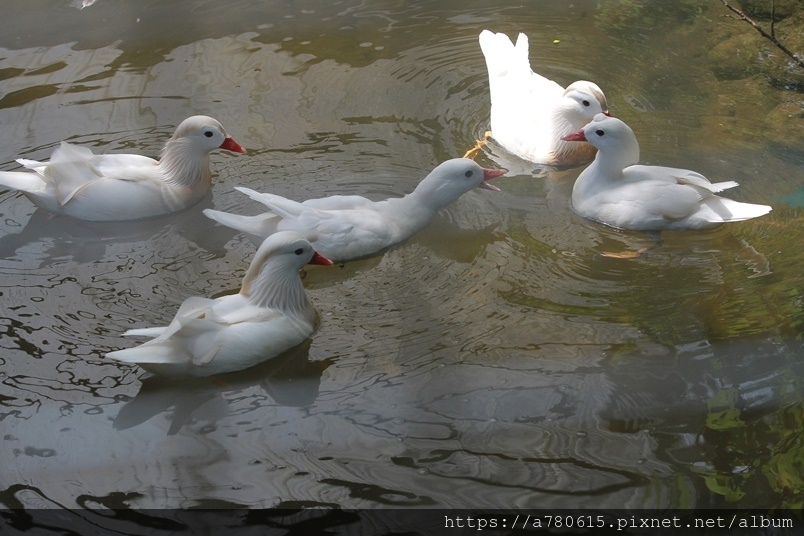 園區養了五隻活潑可愛的白鴛鴦。