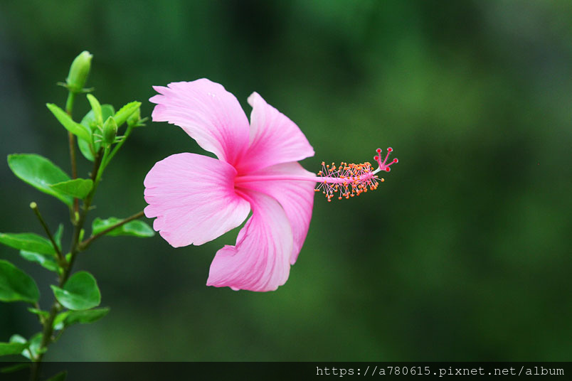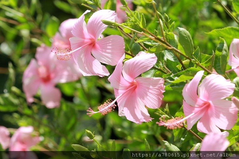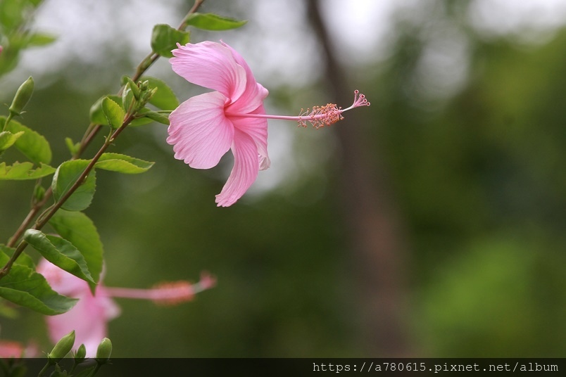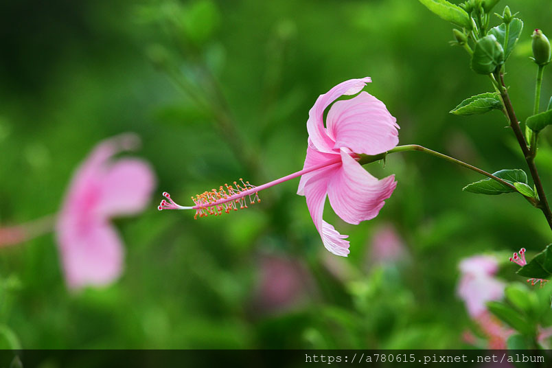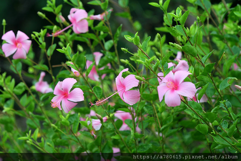 粉紅甜心朱槿粉粉嫩嫩的顏色很討喜,雖處處可見