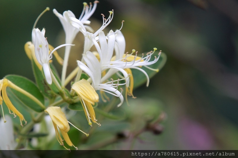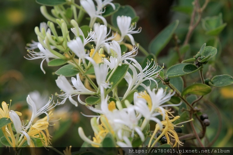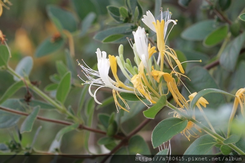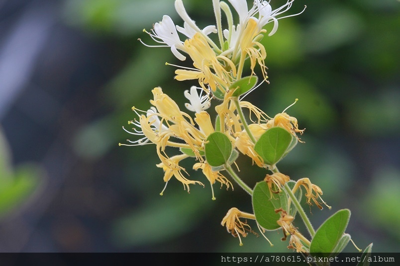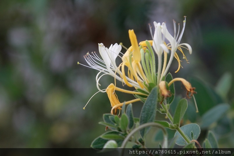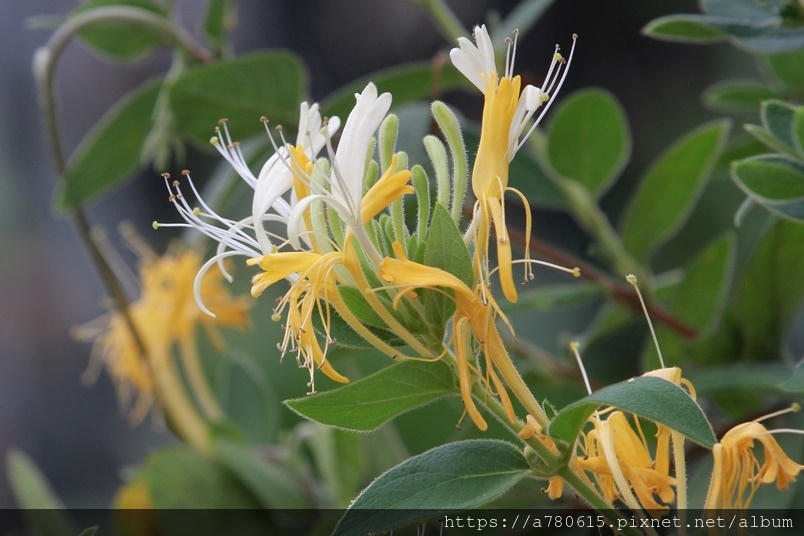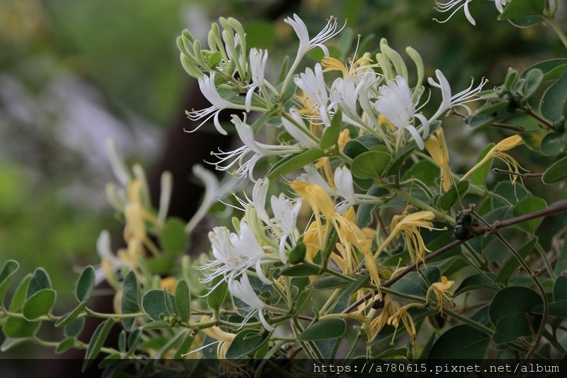 ,因有白色與黃色混雜其間故稱金銀花。開花期春至