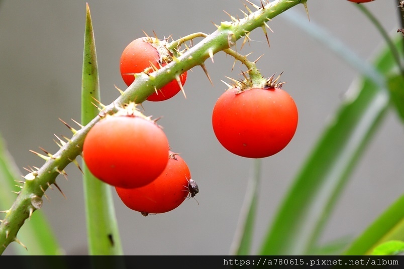 果實漿果球形表面光滑,大小徑約2-3公分,成熟