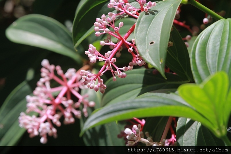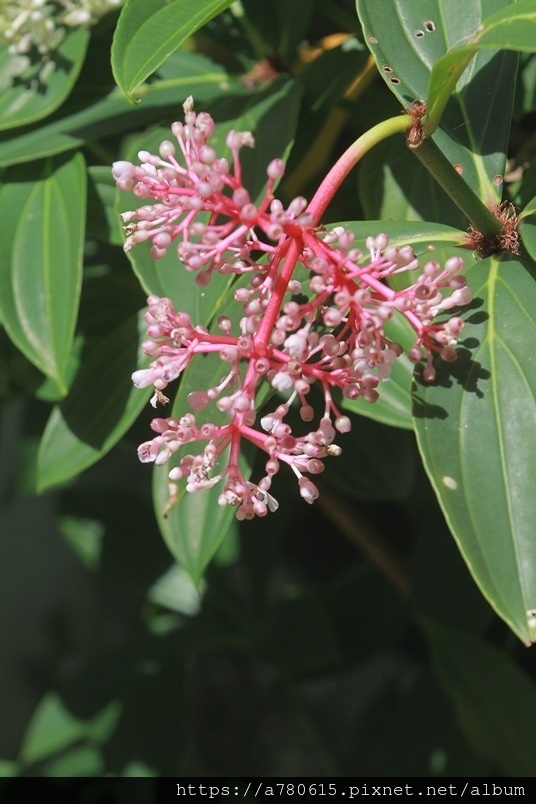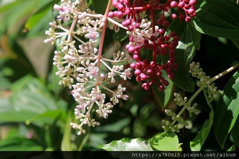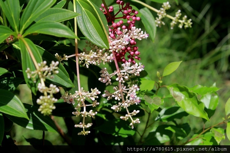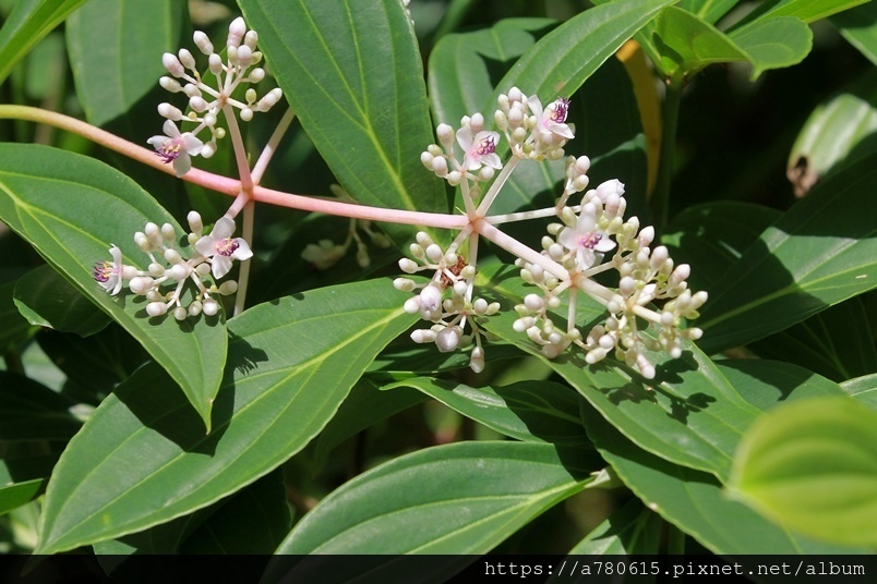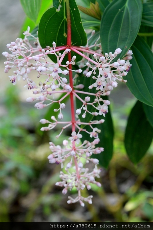 連串爆竹,非常可愛;圓錐花序自枝端伸出,白