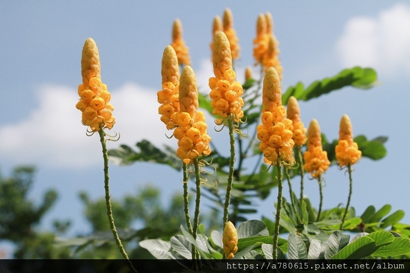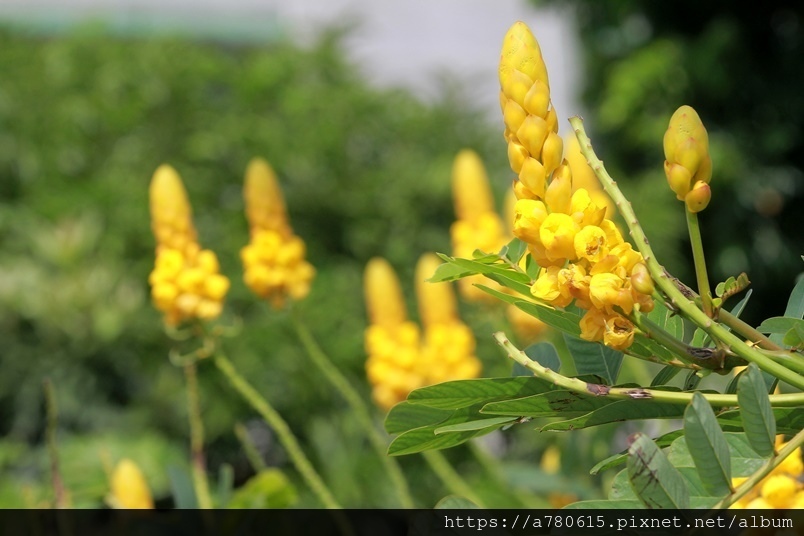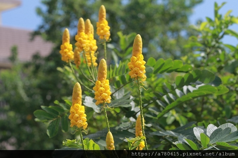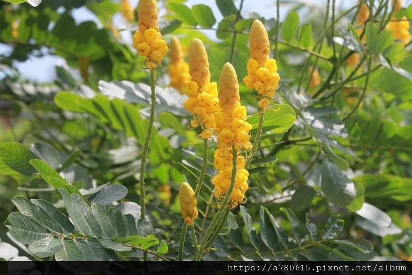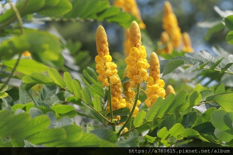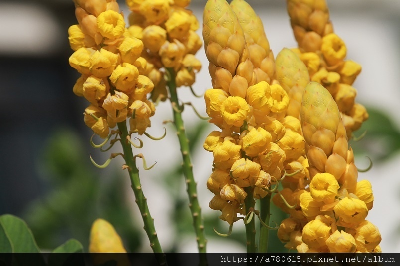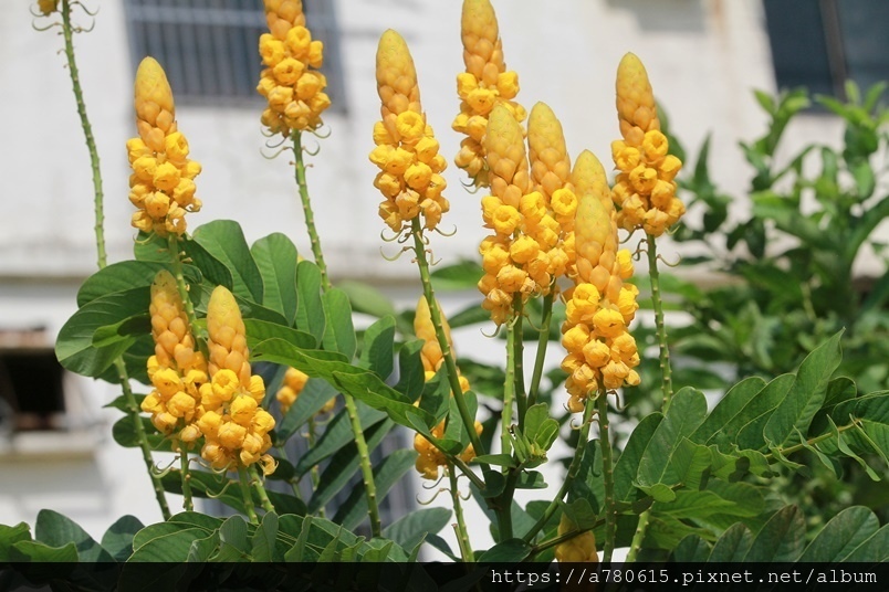 金黃亮麗穗狀的花朵就是翅果鐵刀木美麗的特徵,