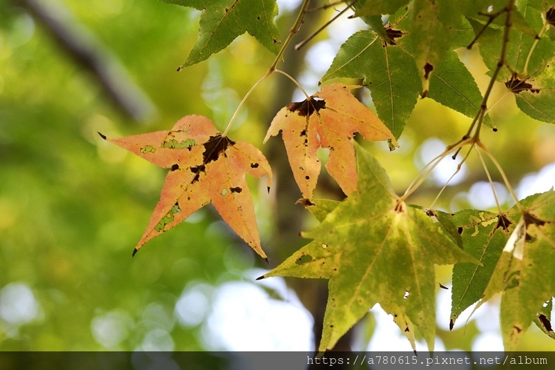 的葉片會慢慢從綠色轉成金黃色,不會變紅。