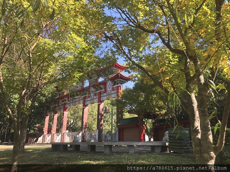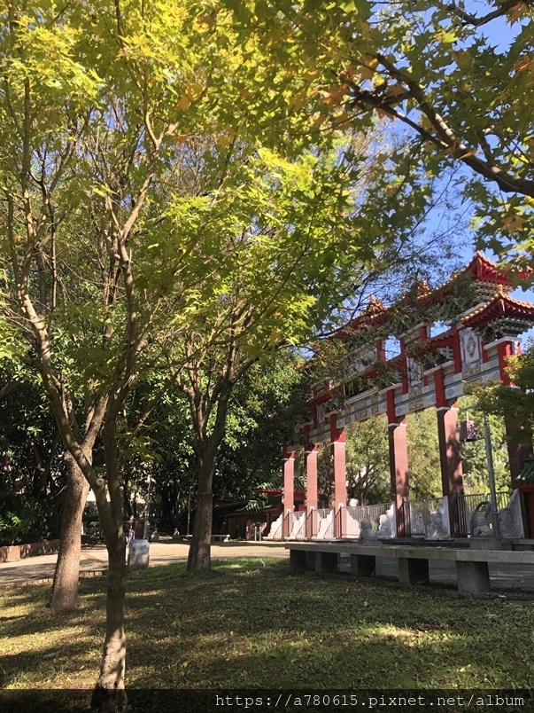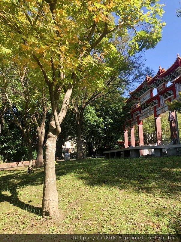 不遠的桃園孔廟來觀賞。陽光灑落在黃綠色的葉子