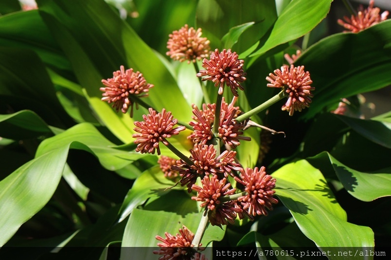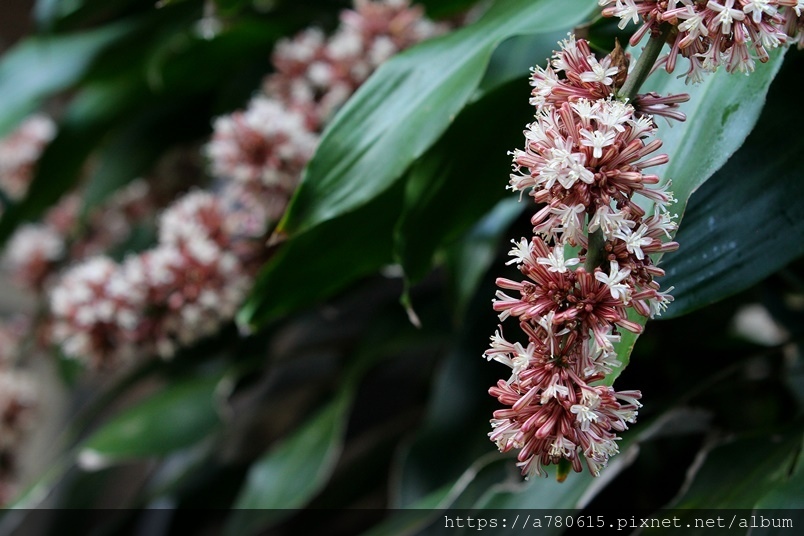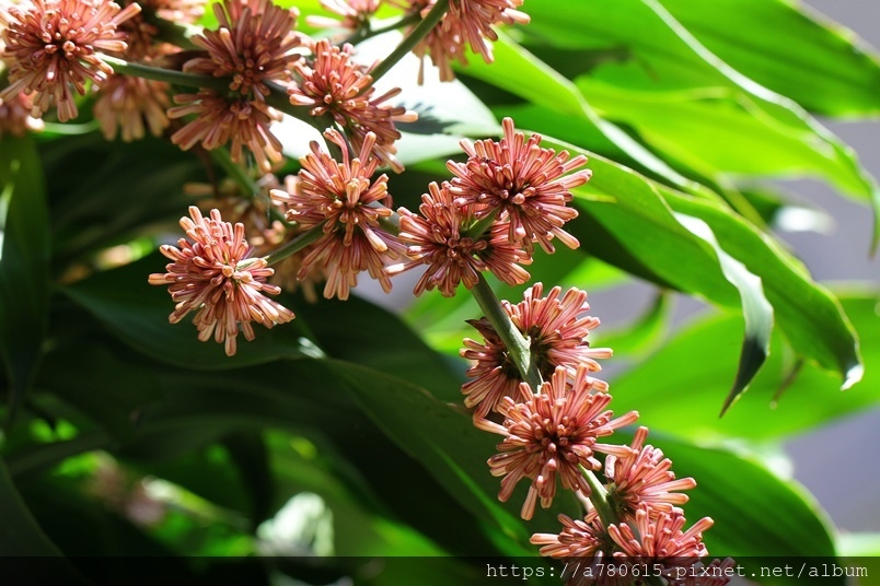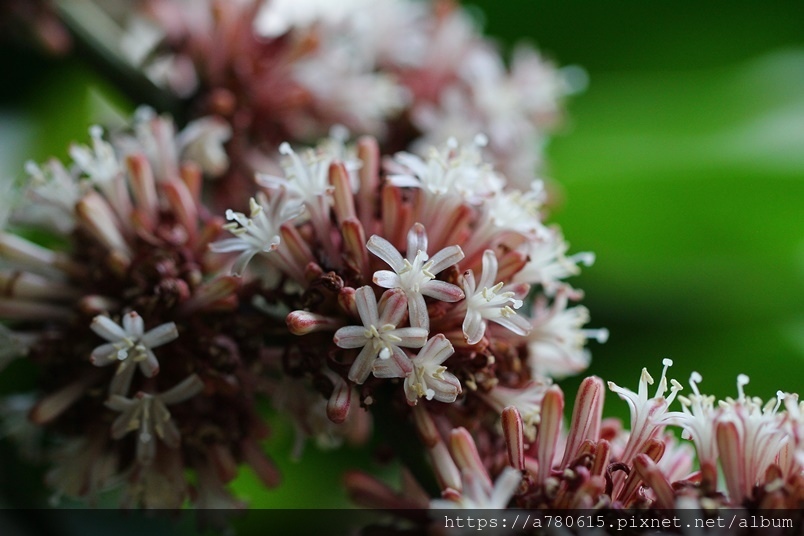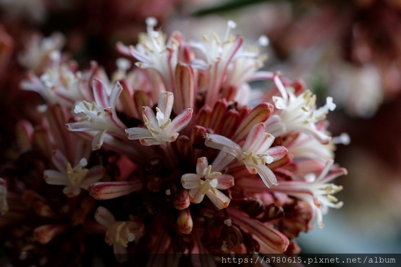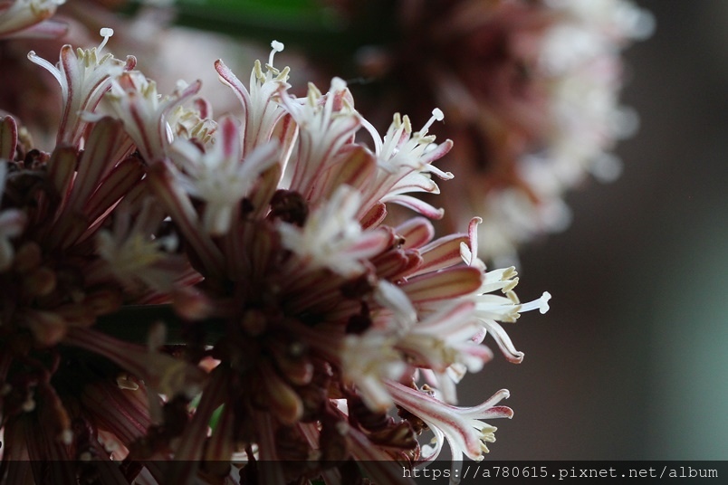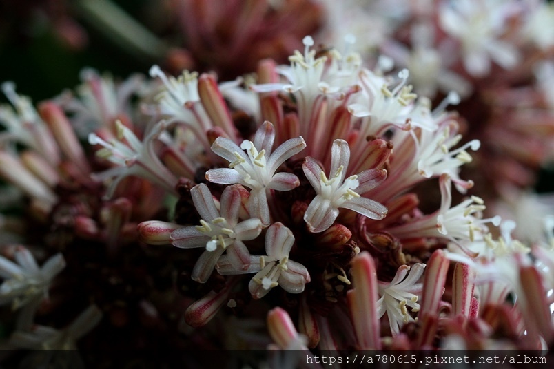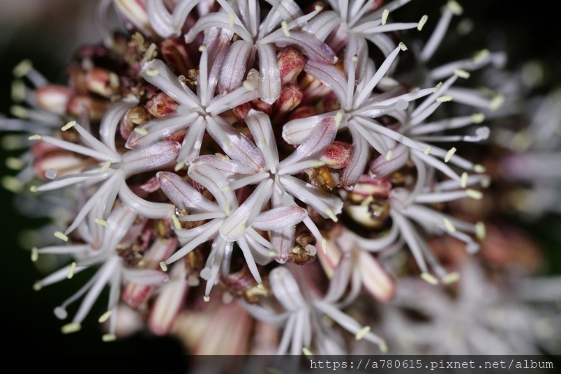 紋的叢聚花序,花苞可達上百個;花小,呈繖房狀,