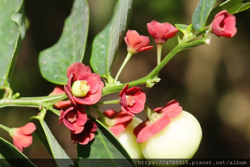 守宮木不論是淺黃平盤狀的雄花或是雌花而後結成圓滾