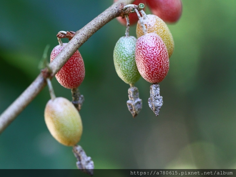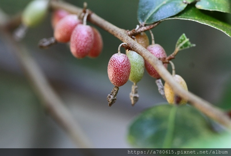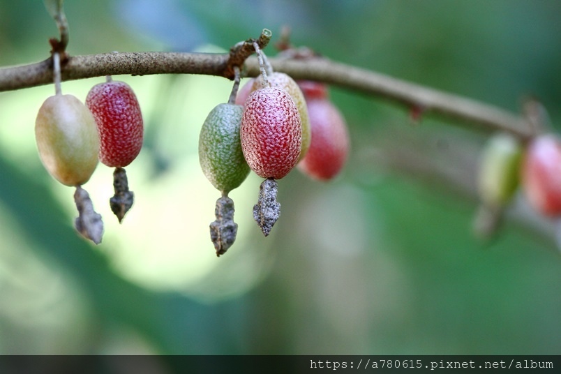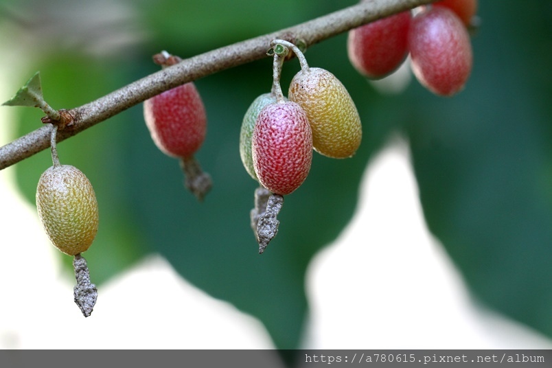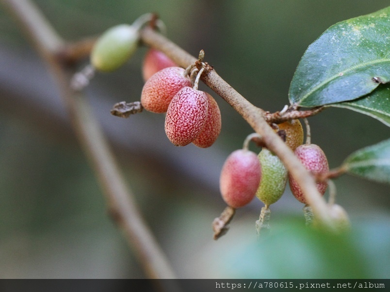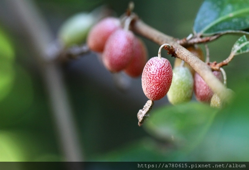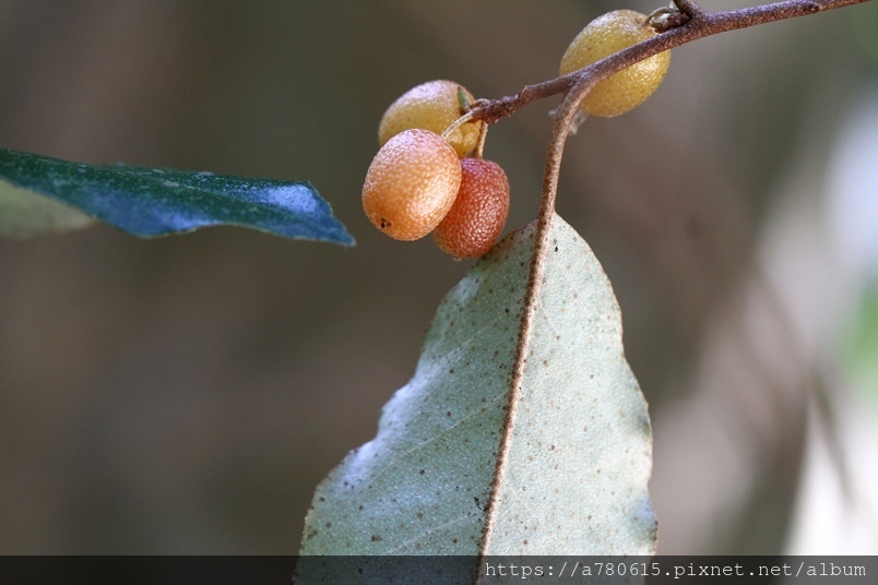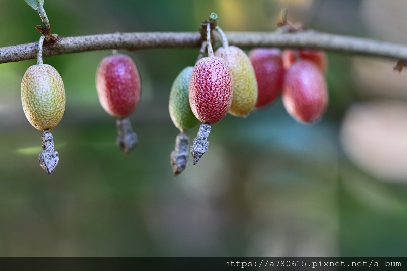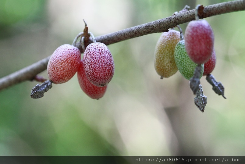 果實核果狀,橢圓形至長橢圓形,散生銀白色鱗片