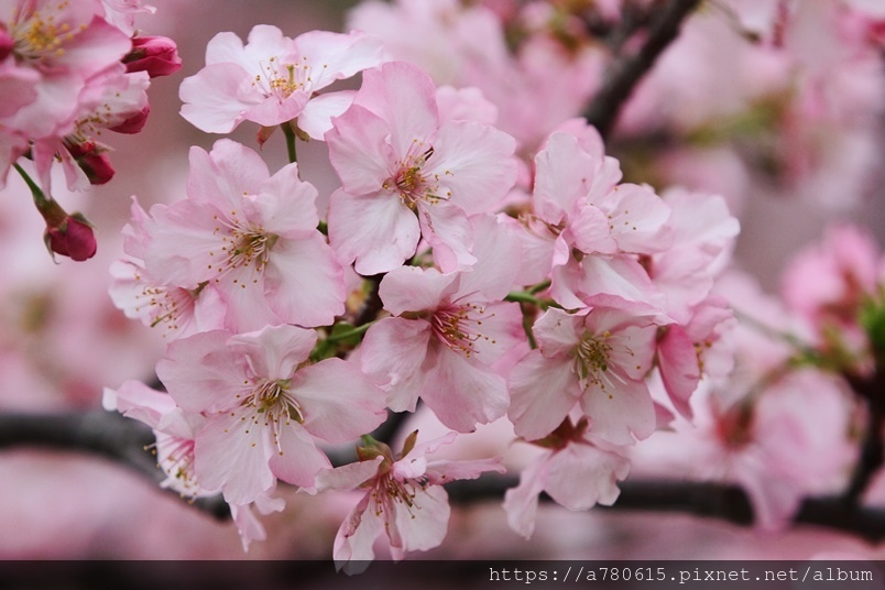 每年2月上旬綻放,花期約為一個月。粉嫩的顏色加