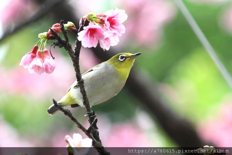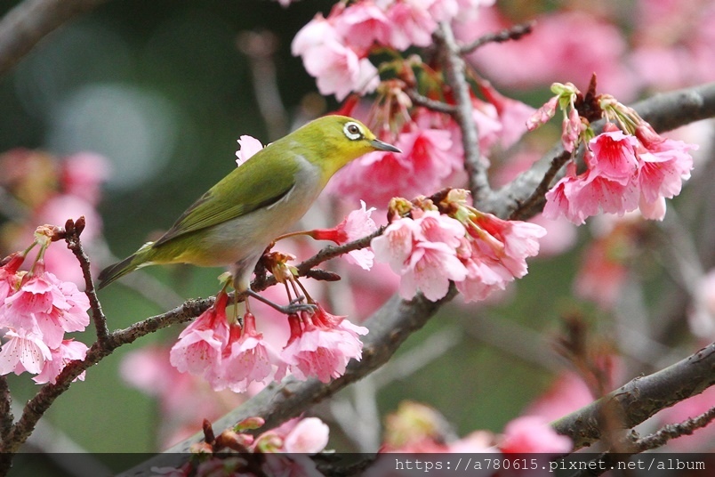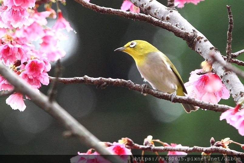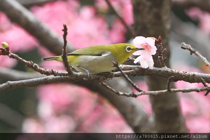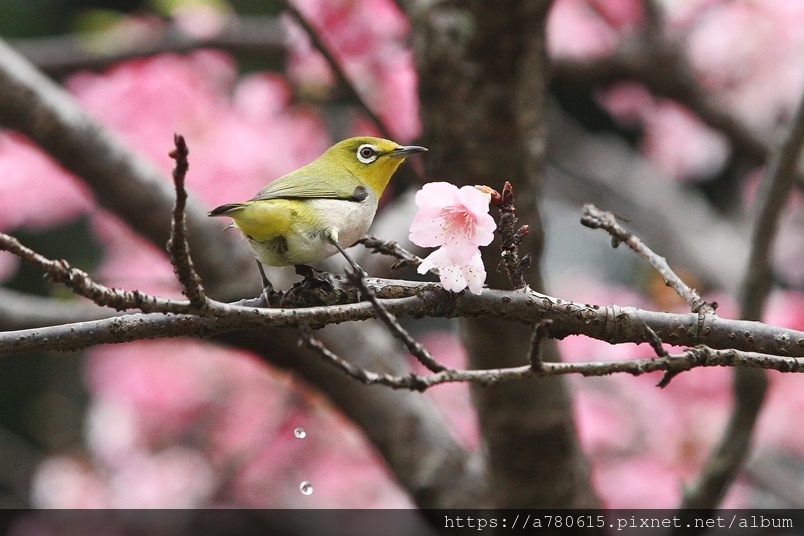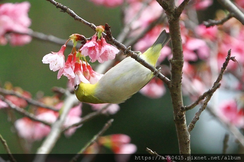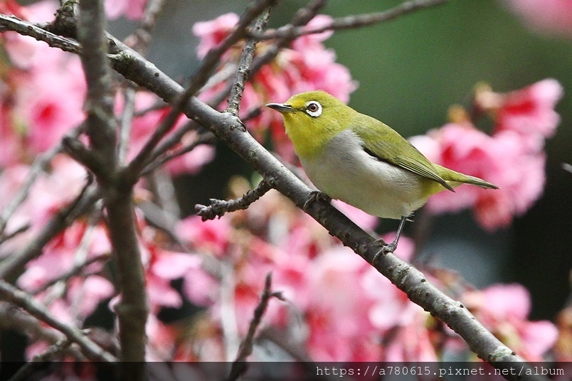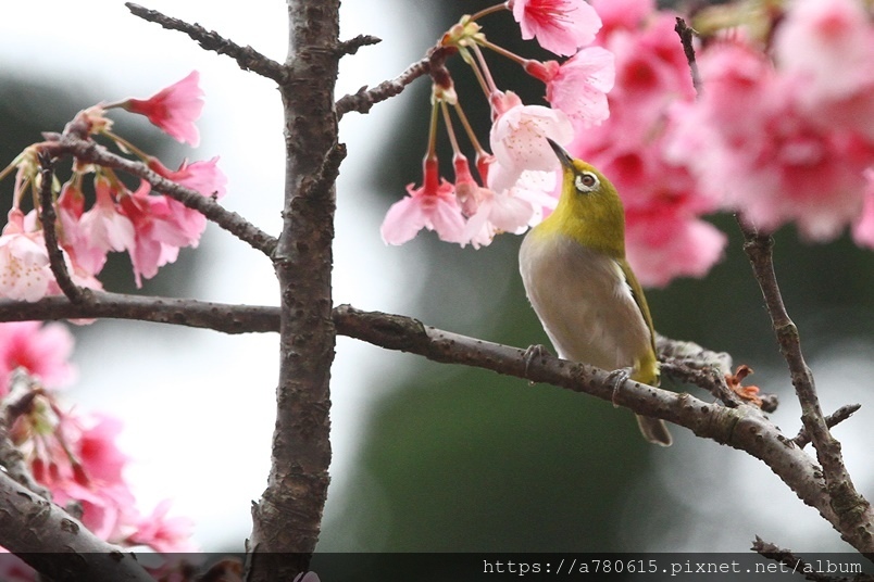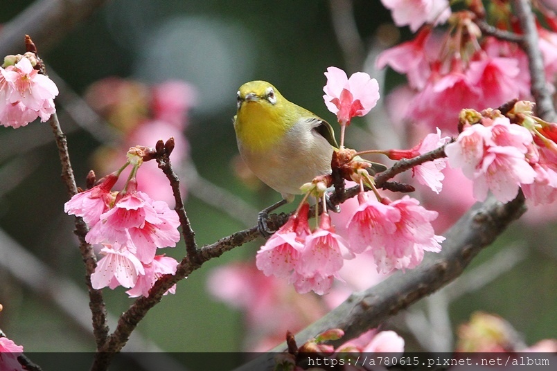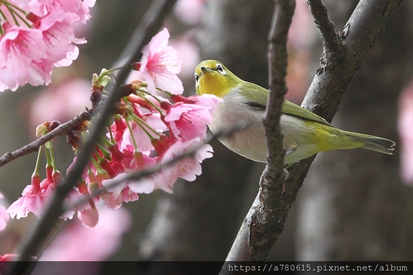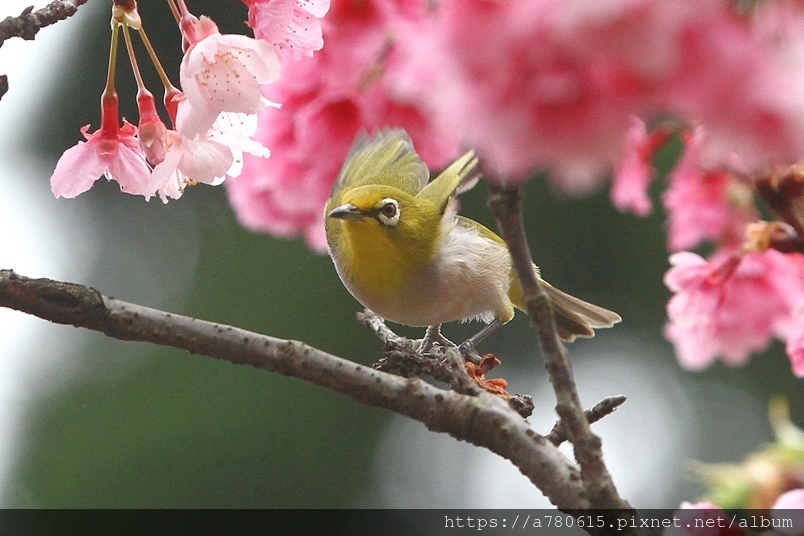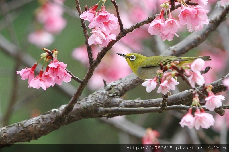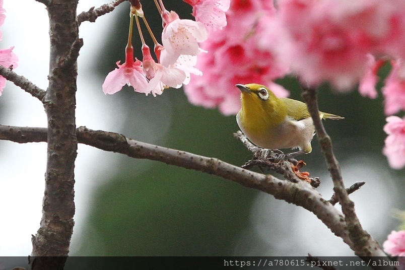 綠繡眼雖然是普鳥,但是櫻花盛開的季節,有牠們出現,