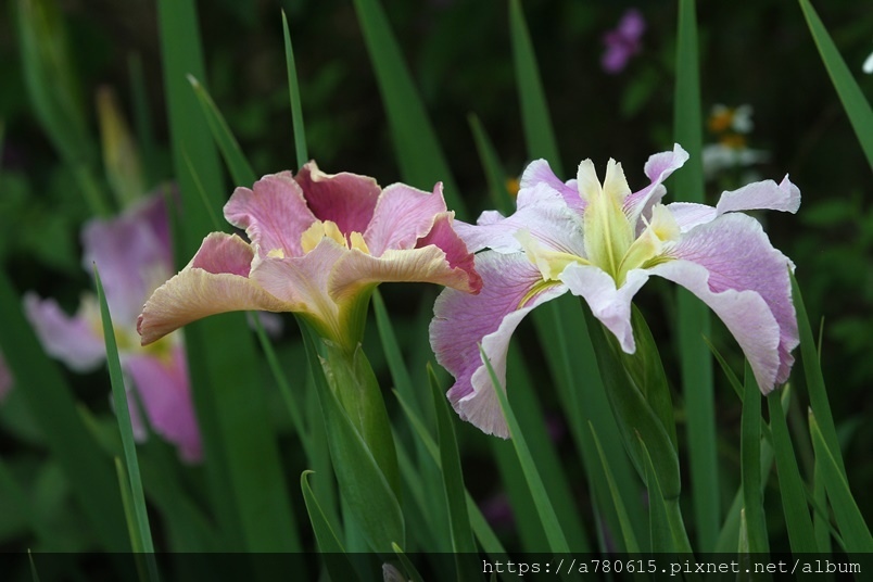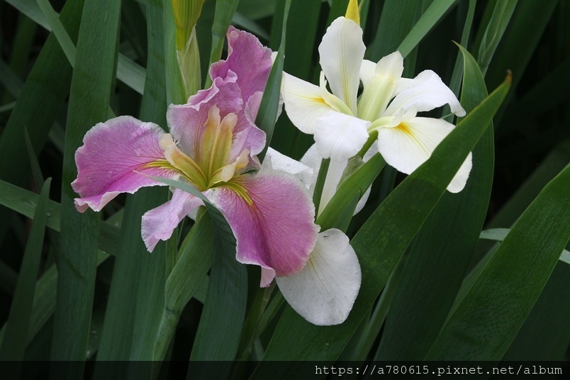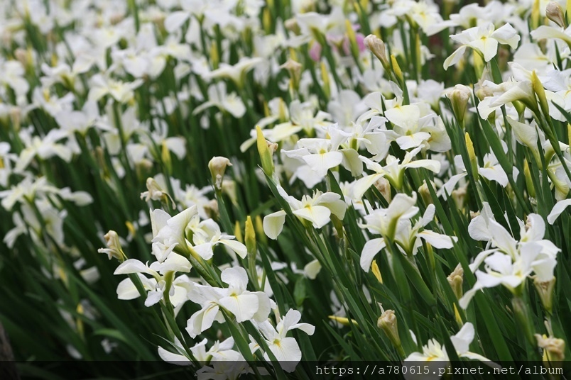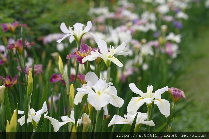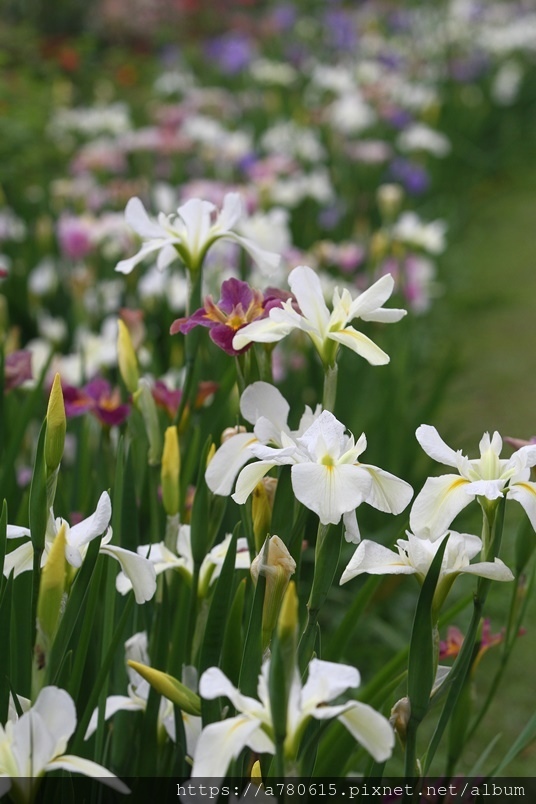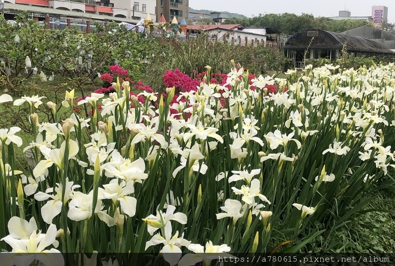 花,目前花已盛開,白、粉、紫、紅四種顏色競相爭豔,