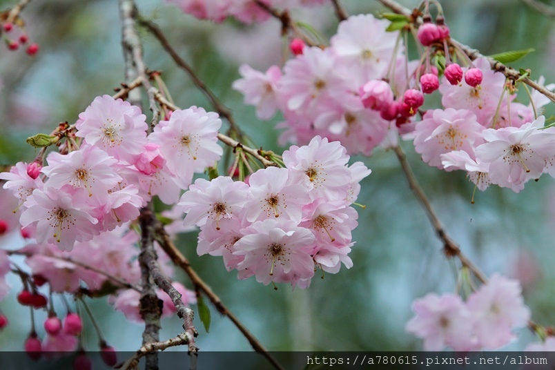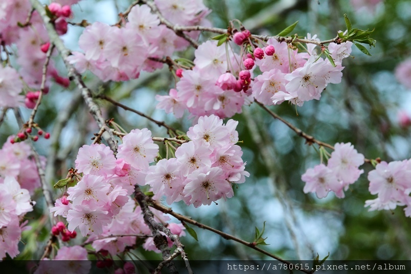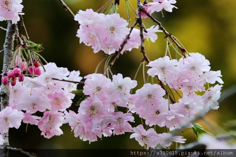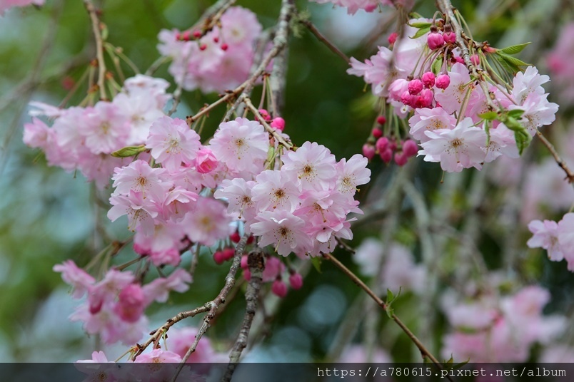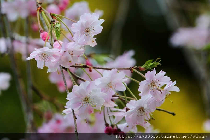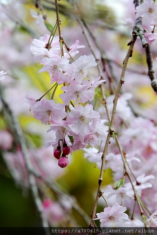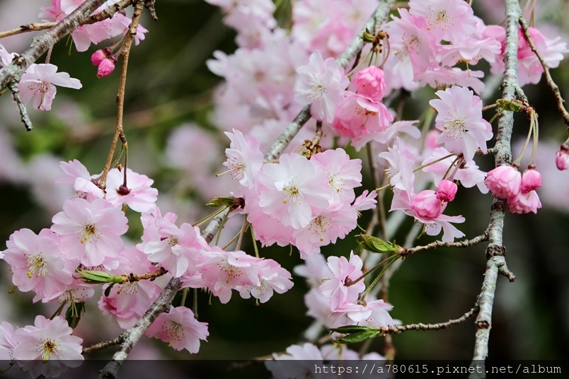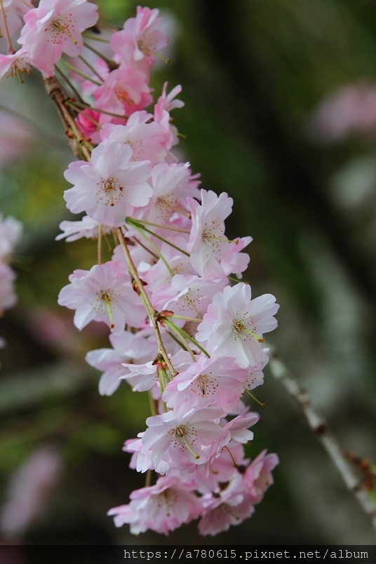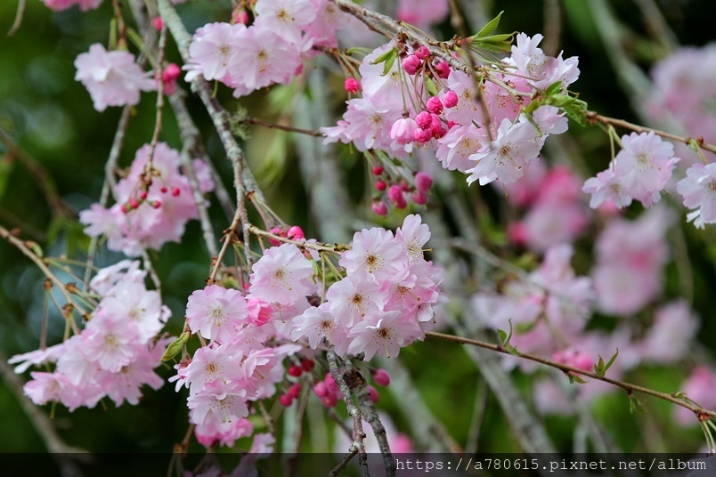 枝垂櫻,又稱瀑布櫻花,因其細枝下垂,花開時如粉