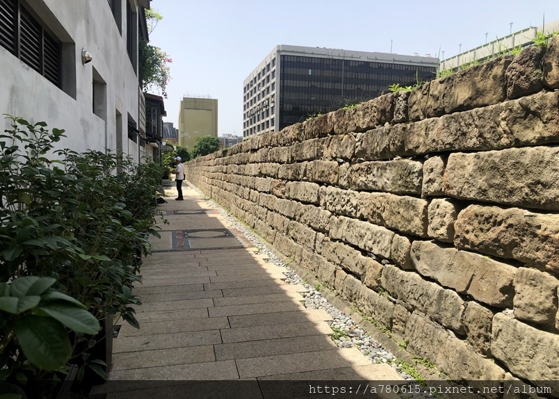 一顆顆堆砌的城堡石,是臺北監獄圍牆遺蹟,很有歷史感。