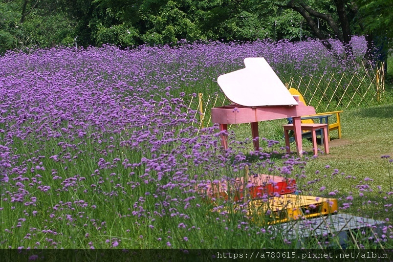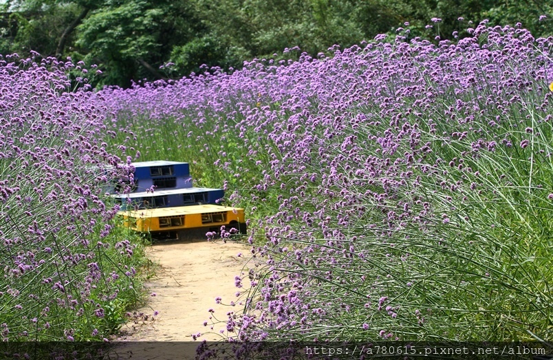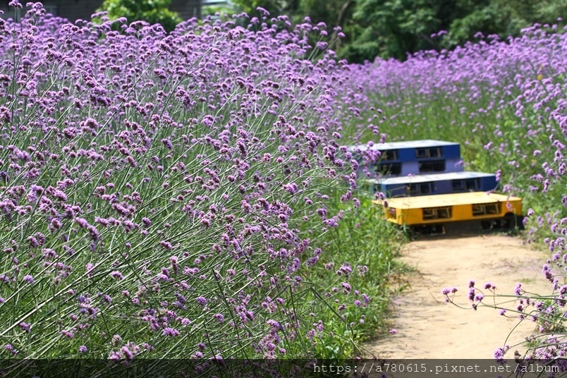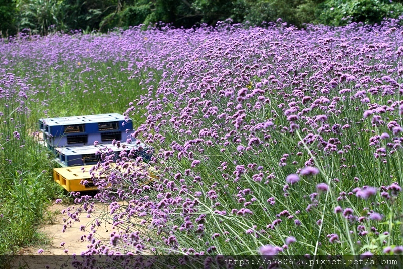 青林農場種植大片的馬鞭草,繁花盛開的景象彌補花莖過
