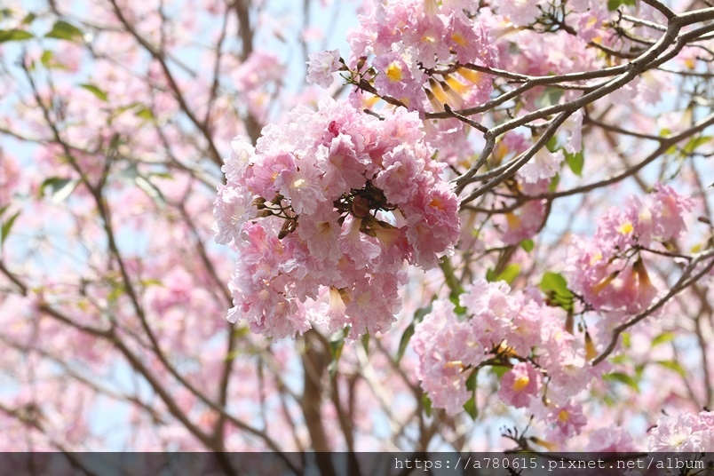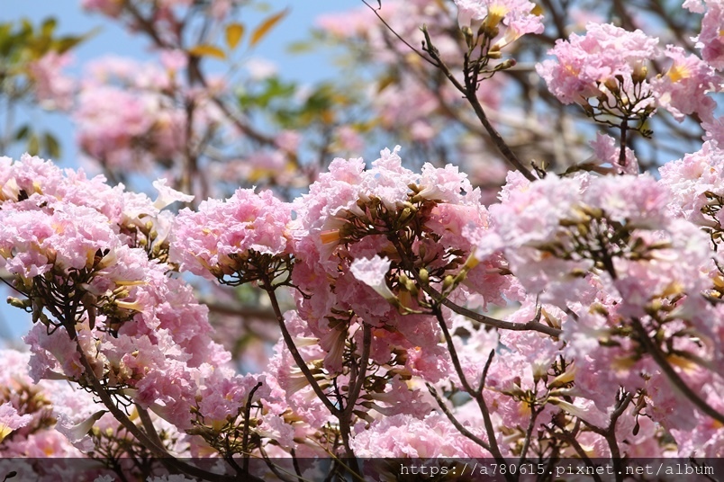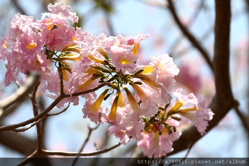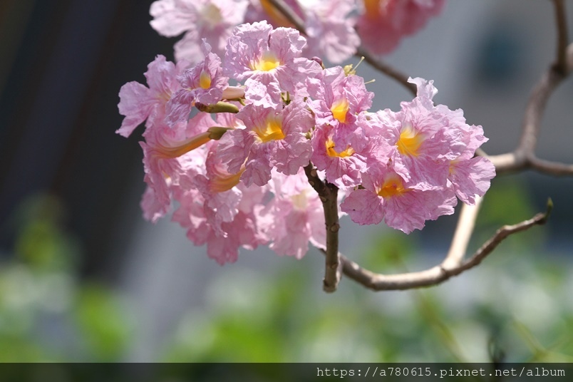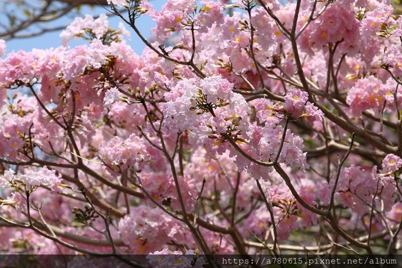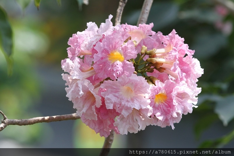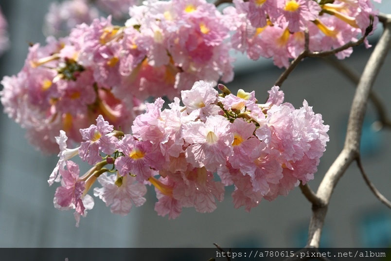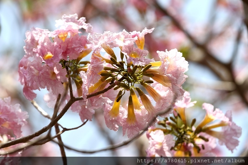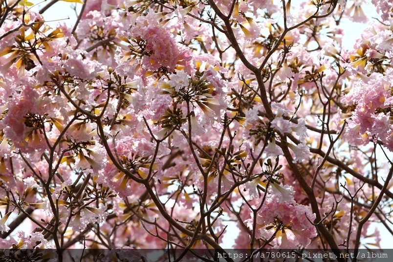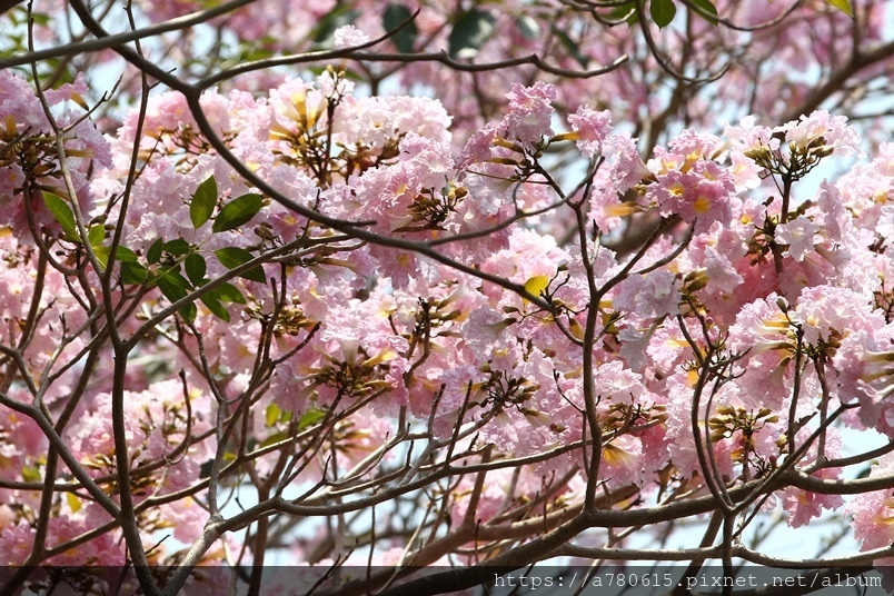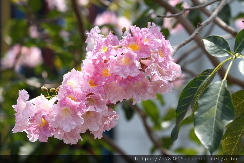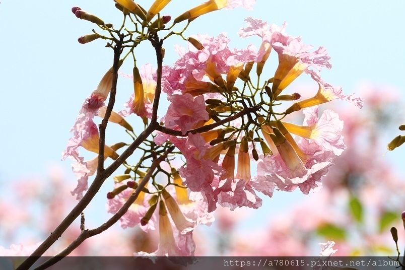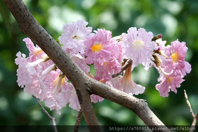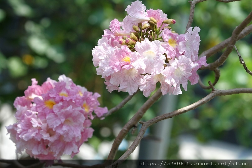 本種的花粉紅色,顏色較淡,又名粉紅風鈴木。株高可達