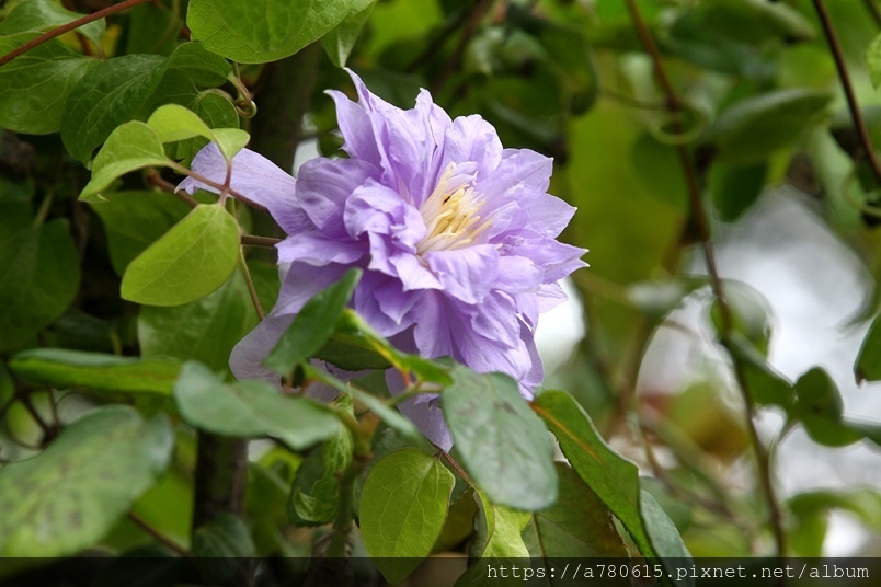 藤蔓像鐵線般硬且細長,開著宛如蓮花的美麗大花,
