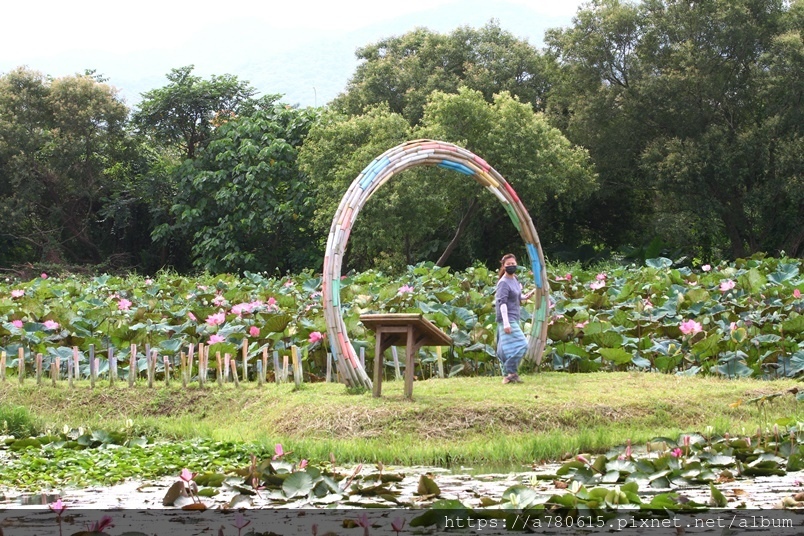 旅客來柑園荷花池能同時享受生態、休憩與藝術,感受荷