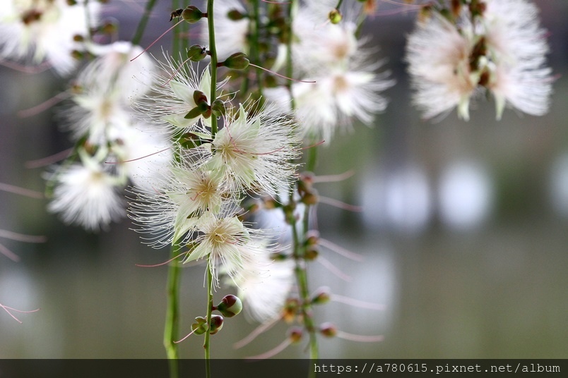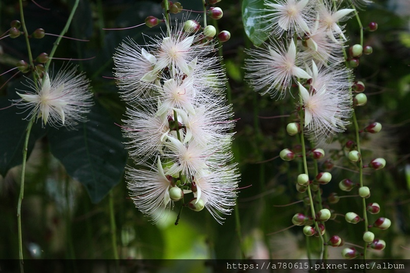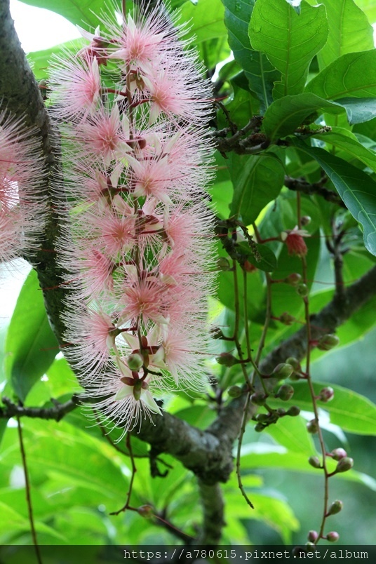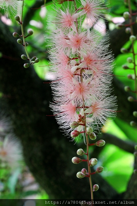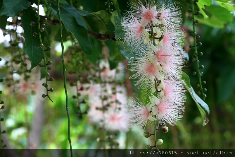 穗花棋盤腳別名水茄苳,白色、粉色穗狀的細長花朵如