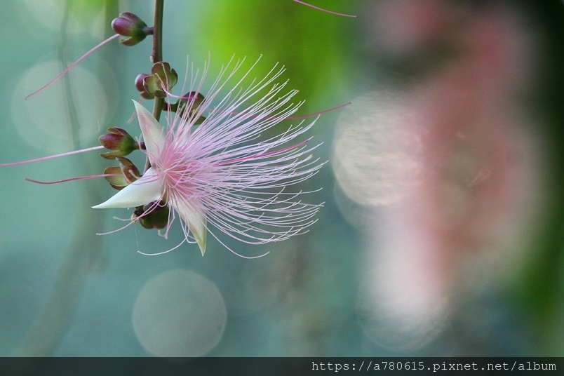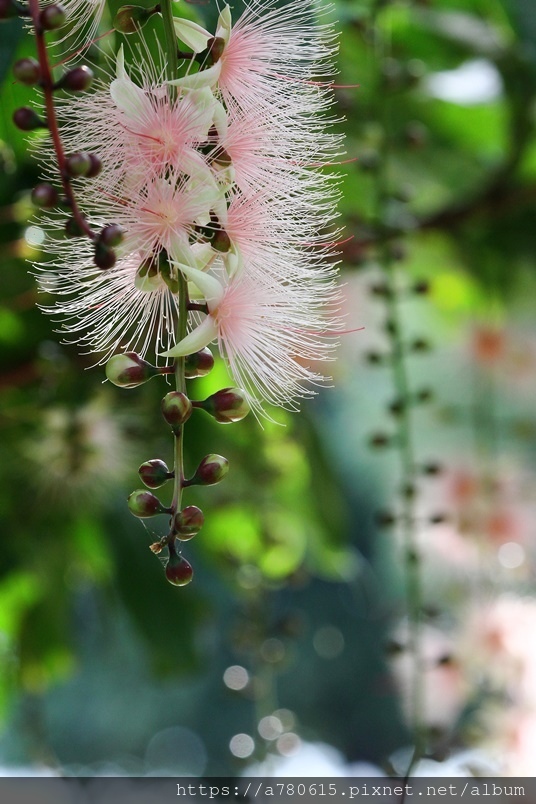 小粉撲般,一串串掛在樹上宛如珠簾垂落,只在夜晚盛