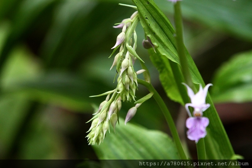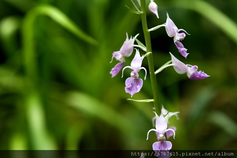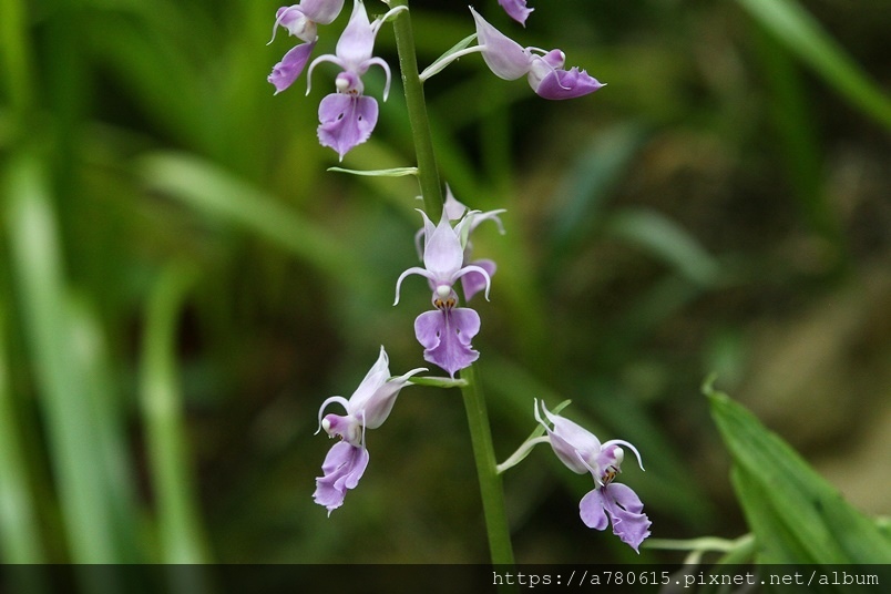 名為紫根節蘭。花瓣及花萼向後反捲,故又名為反捲根