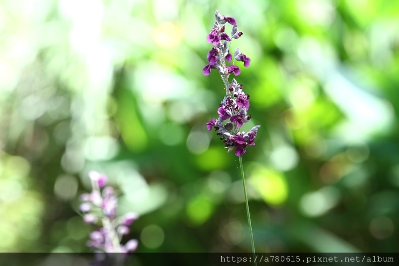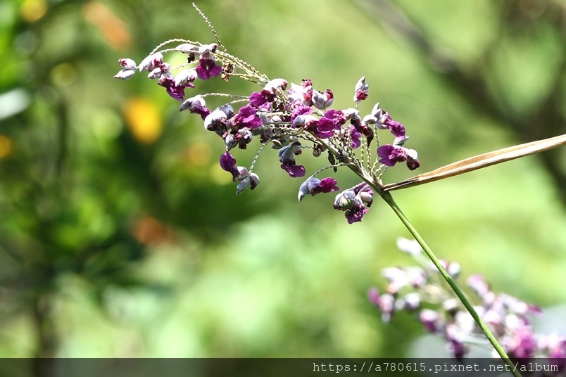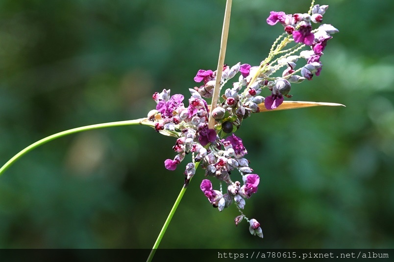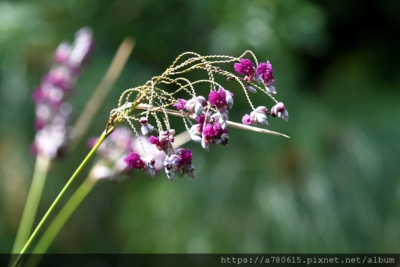 穗狀圓錐花序,花莖高達3m,細長彎垂,花瓣紫色有