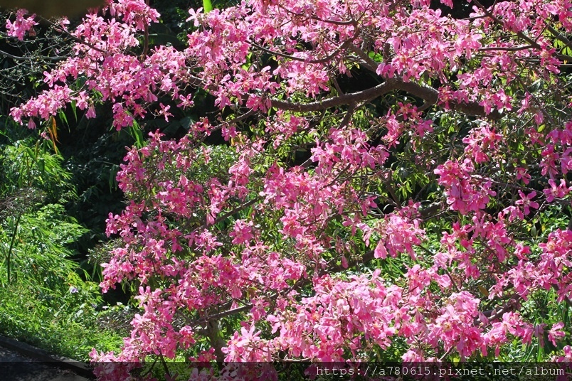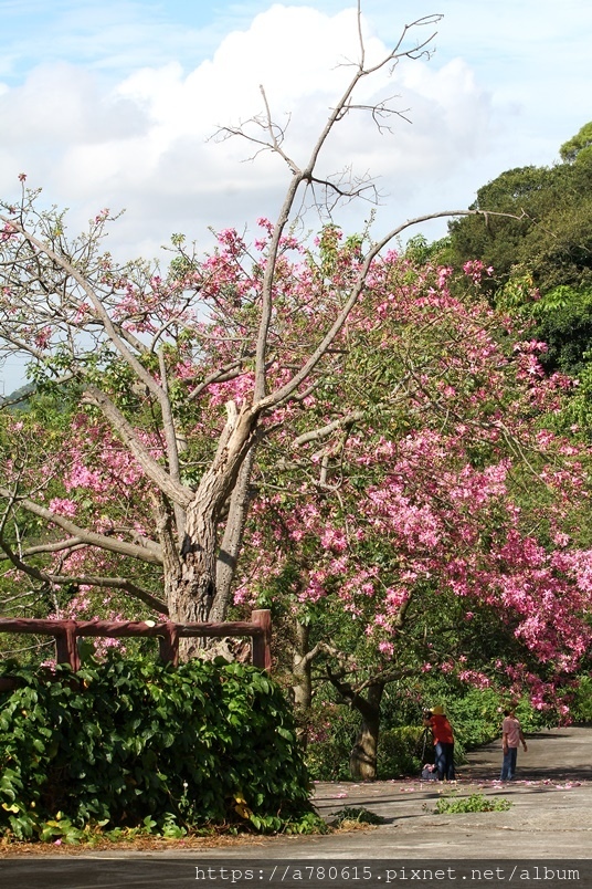 停車場下方種植數株美人樹,目前花正盛放,又吸引不