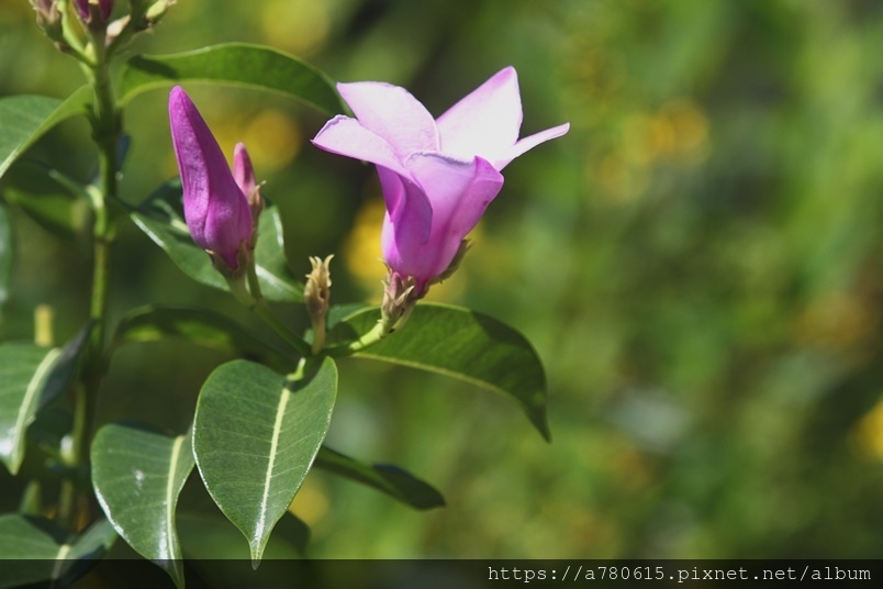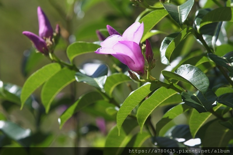 橡膠茉莉,別名:橡膠紫茉莉、桉葉藤、伯萊花、橡膠
