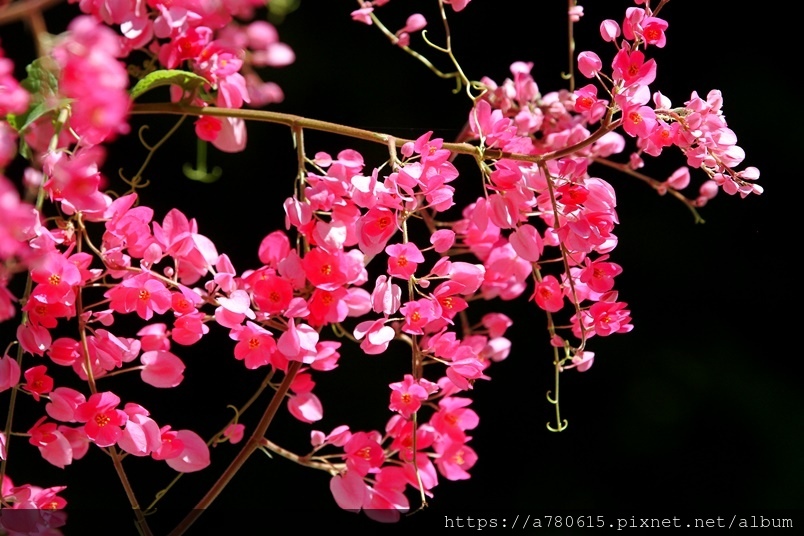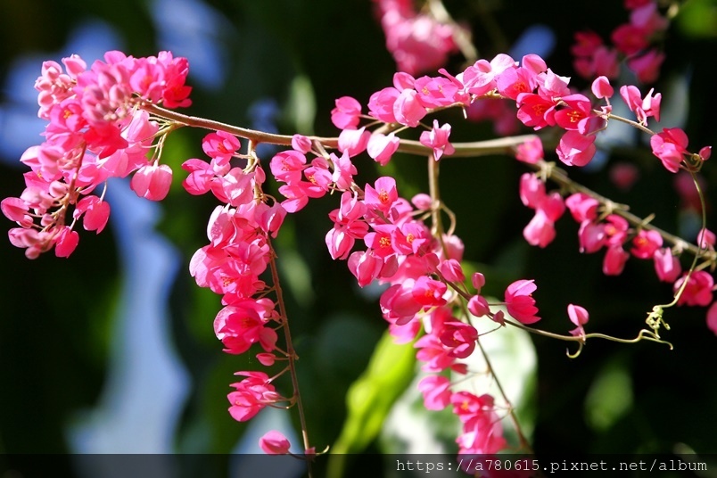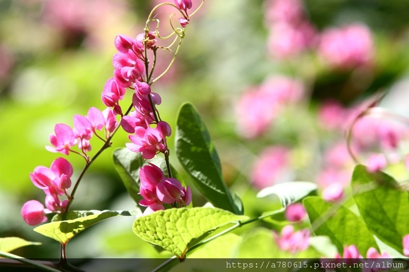 盛開時串串粉紅嬌嫩的花穗晶瑩美豔,泛溢成一片花
