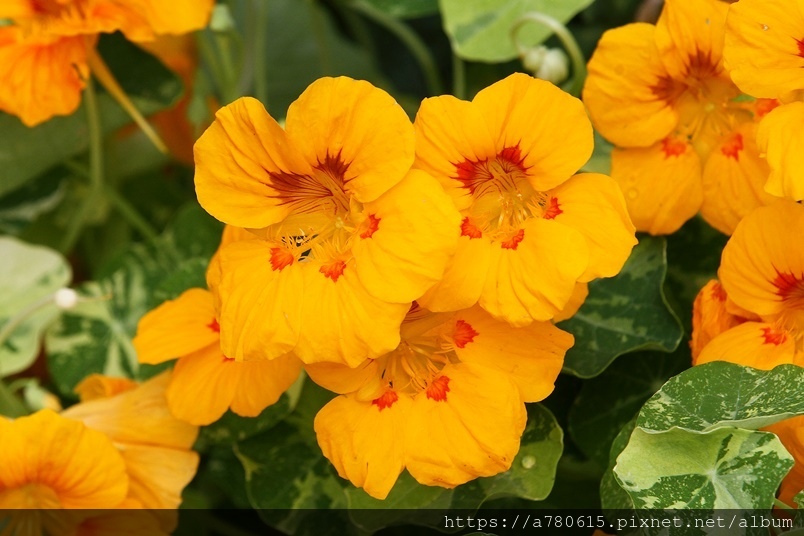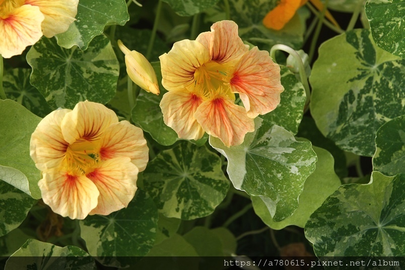 斑葉金蓮花,又名:阿拉斯加金蓮花、花葉金蓮花。