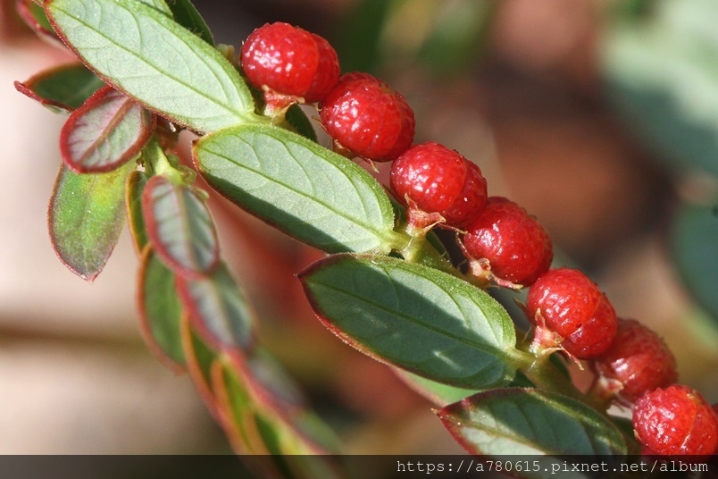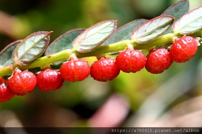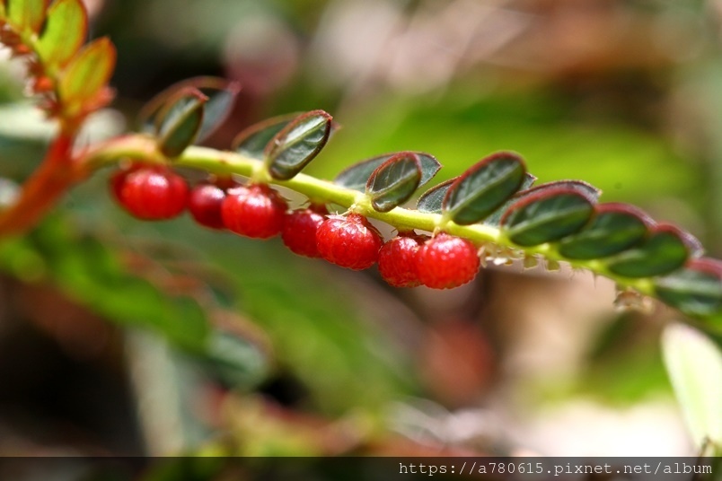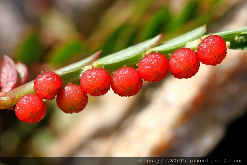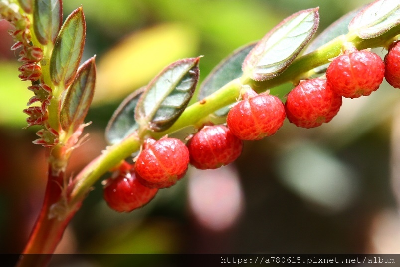 就像是珠子般一顆顆整齊的貼在葉背附近的小枝上,熟