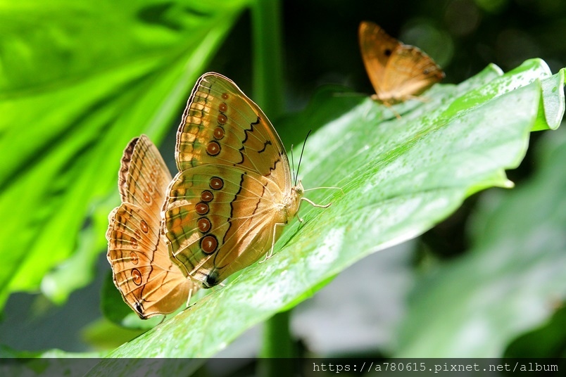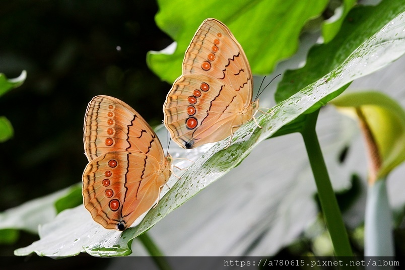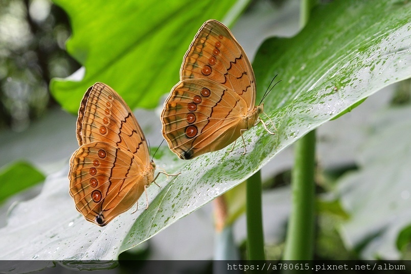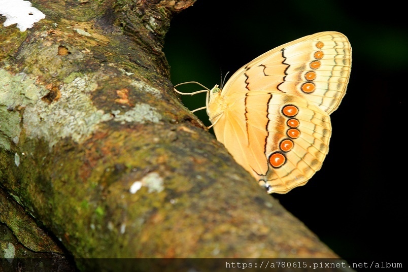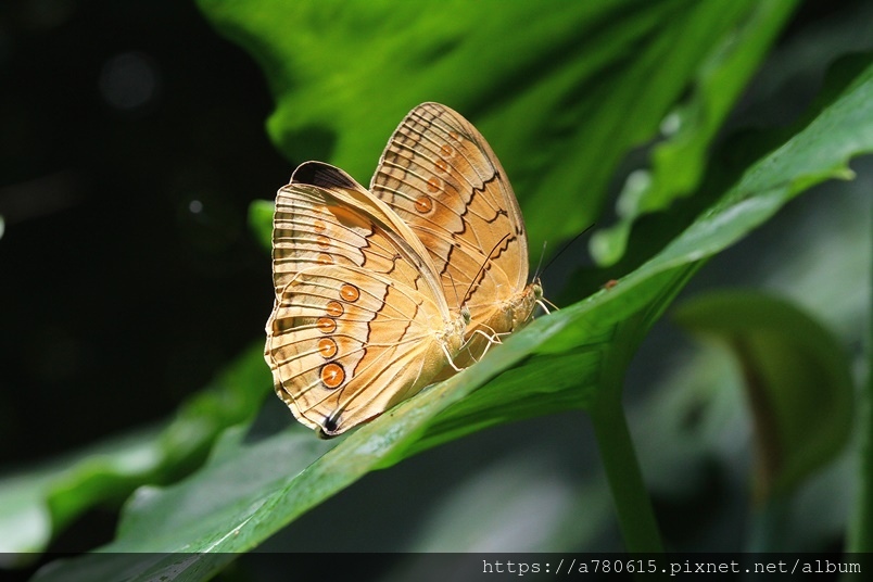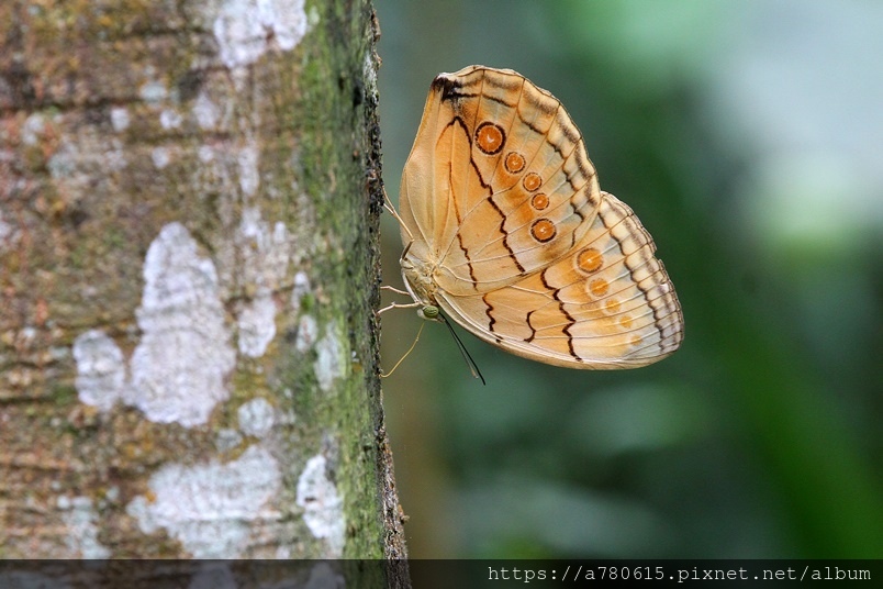 有五個串珠狀的圓形褐色眼紋。十分美麗醒目。雌雄
